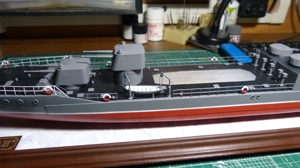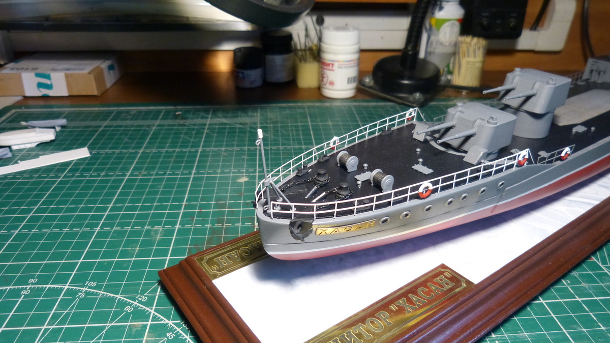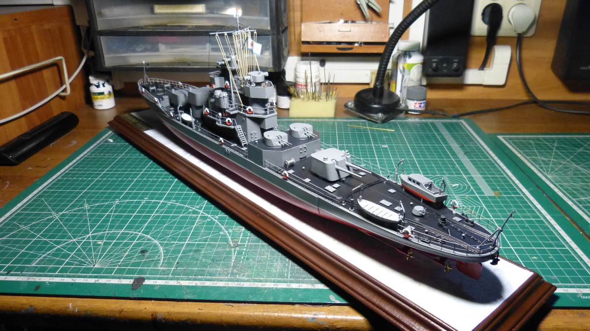 Юра круто, почти законченная модель. Единственное что я бы подкрасил на вьюшках тросы, а то они выглядят как полированные из нержавейки. Я для этого пользуюсь тамиевской черной смывкой, пять минут работы, результат совсем другой, в зависимости от желаемого цвета можно наносить несколько раз.
