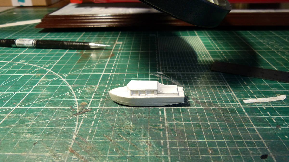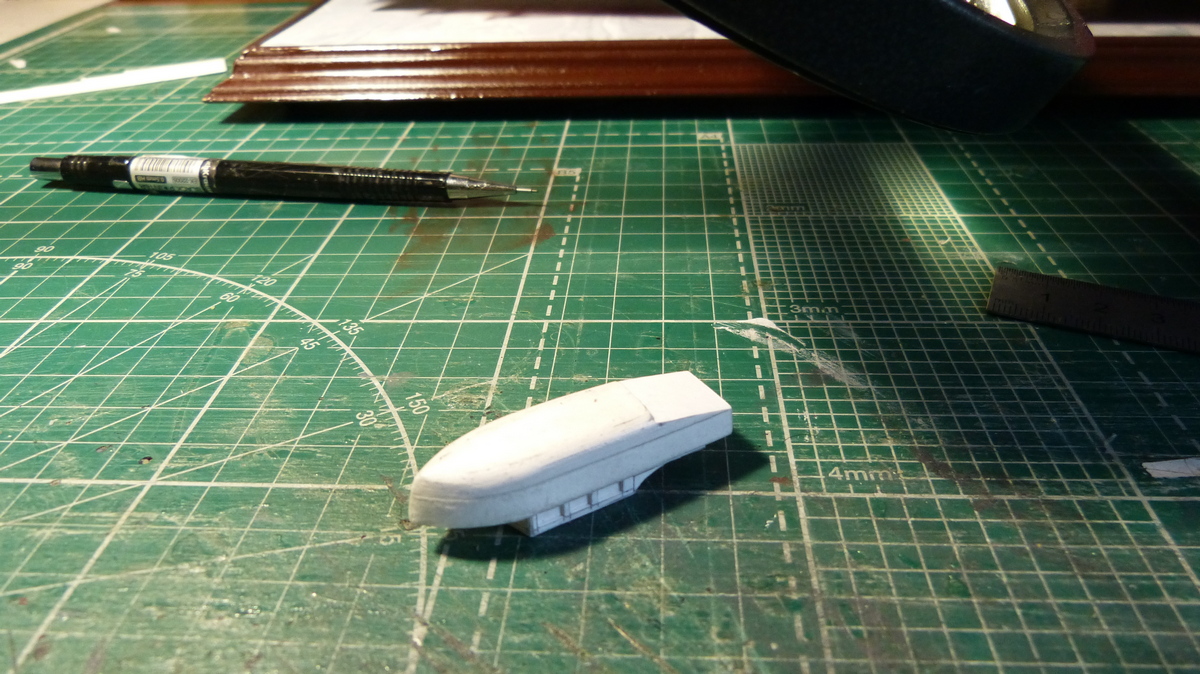 слоями набрал ватман вточил корпус с нишей катера и поставил верхушку