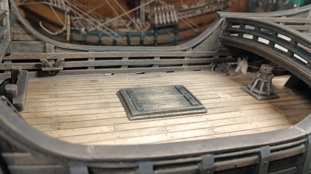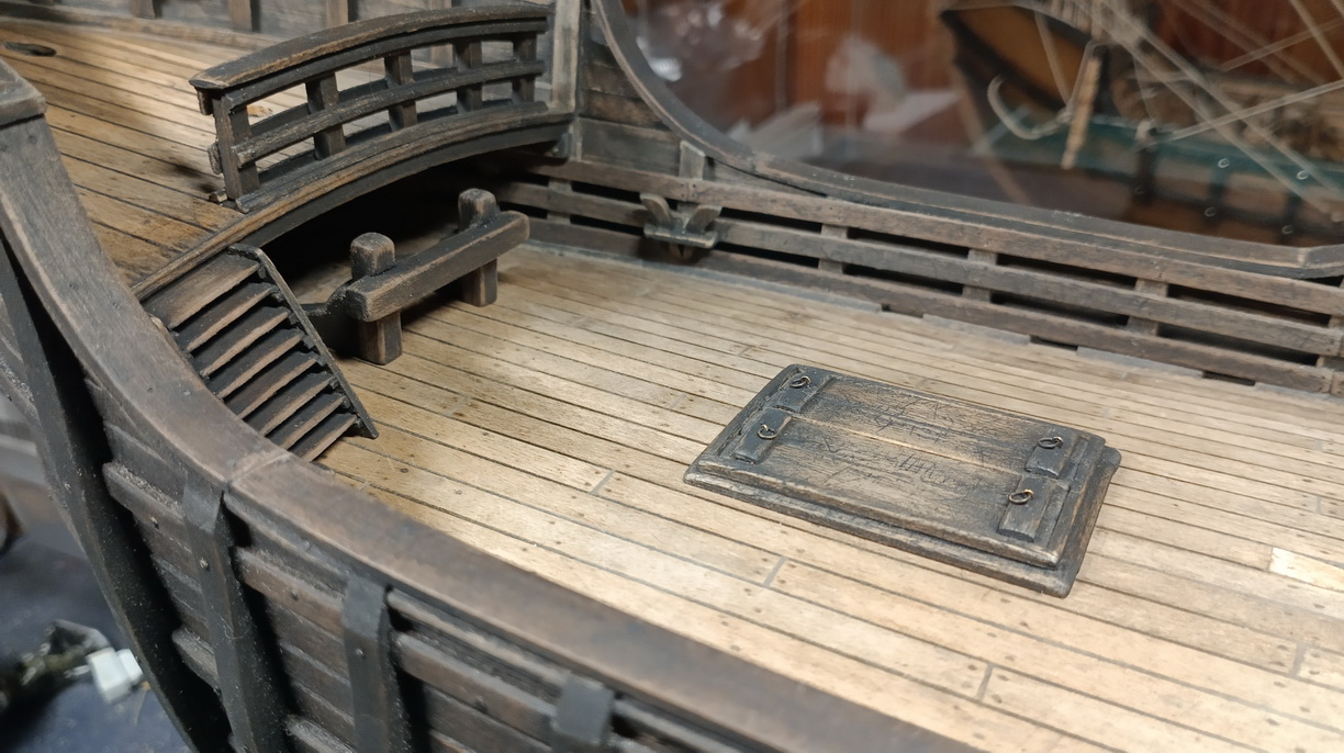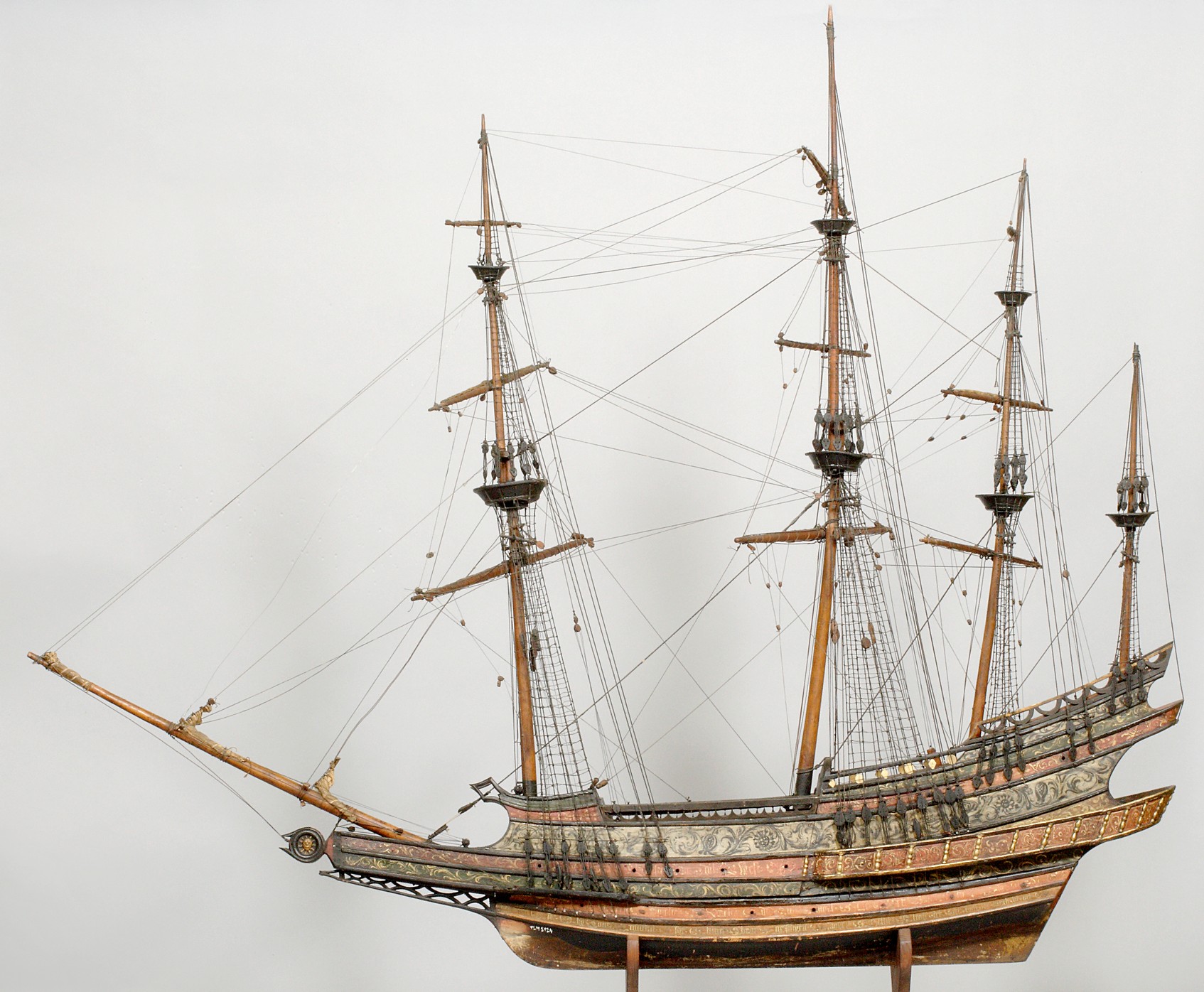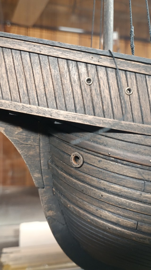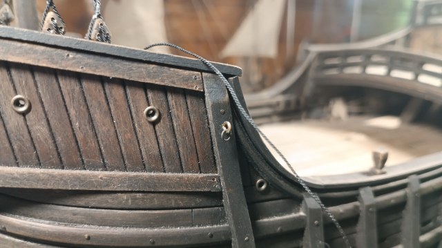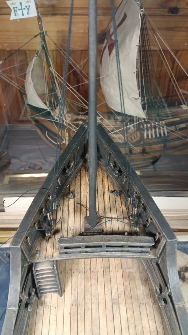 сейчас, если оставить как есть, это будет " весело" смотреться, как к примеру на этой модели, где реставраторы ошиблись веком вооружая модель галлеона такелажем другой эпохи...