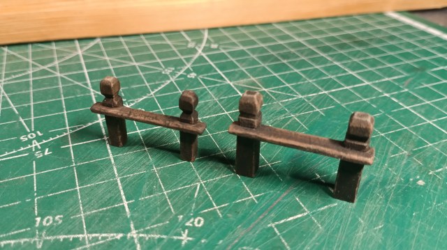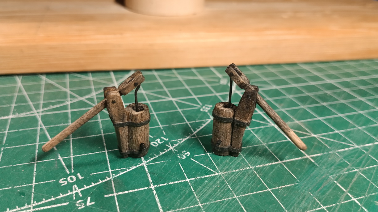Сильно не заморачивался. Купил деревянную дверную ручку, распилил пополам, алик-шмалик, золотой шарик, и вот у нас готовы стойки для корабля.
