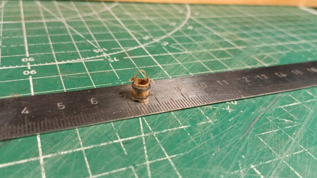 Также просверлил отверстия под проводку такелажа на баке.