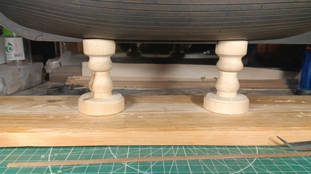 Но обо всем по порядку. Во-первых для удобства дальнейшей постройки пришло время поставить корабль на стойки.