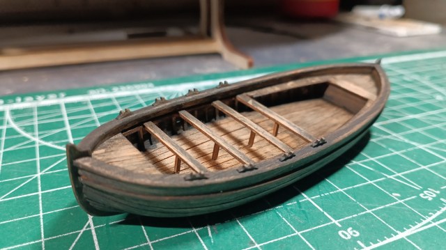 Пока ждал ответов, чтобы работа не стояла на  месте, решил сделать лодку. За основу взял, как мне советовали в сообщении 72, Катер-8 спасательный XIX век от Фальконета.