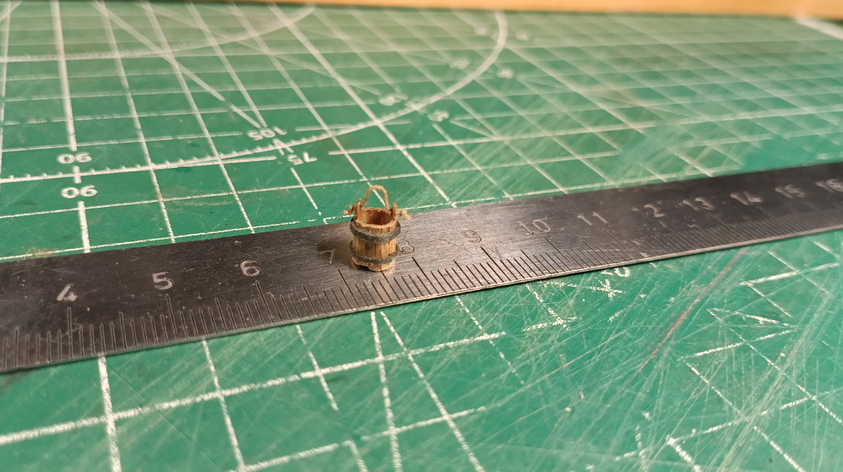 Александр, на самом деле сложного ничего нет. Когда какая-то деталь готова, приходит время ее состарить. По моему мнению идеальных старых вещей не бывает. На всех предметах есть какие-то сколы, потертости, трещины, царапины. Цвет также на поверхности не будет однородным. Ведь предметами пользуются - их трогают, бьют, царапают, ветер их обдувает, солнце высвечивает окраску, дождь. Поэтому для начала я беру надфили и стачиваю немного те ребра детали, которые могли бы подвергаться внешним воздействиям больше всего. Это те места, за которые человек мог браться руками, или задевать их ногами при ходьбе. К примеру перила - логично предположить что края перил протрутся больше чем плоская часть, т.к. человек опираясь на них прежде всего трется об места изменения геометрии. Это первый момент. Второй момент, опять же по моему мнению, я сильно сомневаюсь, что в ту эпоху делали идеальные предметы. Я имею ввиду что такая вещь как идеальная подгонка под 90 градусов, идеальные квадратные и прямоугольные сечения и т.д. и т.п. не имели места быть. К этому конечно стремились но не так как мы это делаем на моделях. Да, в более позднее время, наверное конечно уже делали, в 15-16 веках... не уверен. Поэтому когда у меня совершенно случайно откалывается часть древесных волокон и это не критично для детали, я иногда так и оставляю. Ибо так могло быть и с настоящей вещью. Поэтому у меня не везде идеальная подгонка деталей. Тут во мне борются два противоположных желания. С одной стороны хочется все сделать идеально и точно, а с другой я пытаюсь себя убедить что так оно в то время вряд ли было и не стоит этим заморачиваться. Но что-то я отвлекся. Итак, после сглаживания надфилем или мелкозернистым наждаком выступающих ребер, начинаем портить вещь. То-есть реально портить - беру крупнозернистый наждак и начинаю им наносить царапины на поверхности. Тут конечно главное не переборщить, но все на любителя... Я обычно использую два крупнозернистых наждака - один для нескольких крупных царапин, второй для большого количества мелких. Эти мелкие царапины особо и не заметно, однако именно они создадут в последствии этот внешний вид, эту потертость. Причем в зависимости от света и угла просмотра будут видны те или иные мелкие царапинки. Далее приступаю к тонированию.  Первое что я делаю это тонирую деталь разведенным битумным лаком. Лак использую не тот что в строительных магазинах   , а тот что продается в магазинах типа Леонардо и т.п. Тут тоже как бы надо с умом подходить к тонировке. Наша цель добиться цвета состарившейся древесины - если тонируется светлая древесина (например липа), то битум сильно разводить не стоит, если темная (например орех), то можно и не тонировать или чисто символически. Далее я использую черную масляную краску. Ну или почти черную. Ее я тоже разбавляю (использую пинен), т.к. если ее не бавить то сохнуть она будет ооочень долго. Отсюда вытекает следующая проблема - краска покрывает древесину не целиком - получается такой полупрозрачный слой. Эта проблема дает с другой стороны также и преимущество - можно степенью разбавленности краски регулировать плотность слоя наложения краски. И что не менее важно, благодаря тому что это масляная краска и ее можно бавить, есть возможность "отката"! То-есть положил слой краски, а он получился очень темный - взял ватную палочку, о