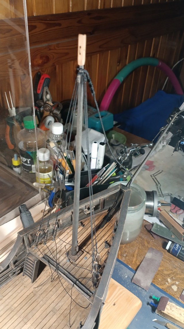 Коллеги, все-же хотел вернуться к своему посту №219 про мачты. Вопрос с топами я для себя уже решил. Как вы видели на фото, на фоке я уже сделал отдельный блок. Но вот как быть с подвесом грота-рея? Можете сказать свое веское слово?