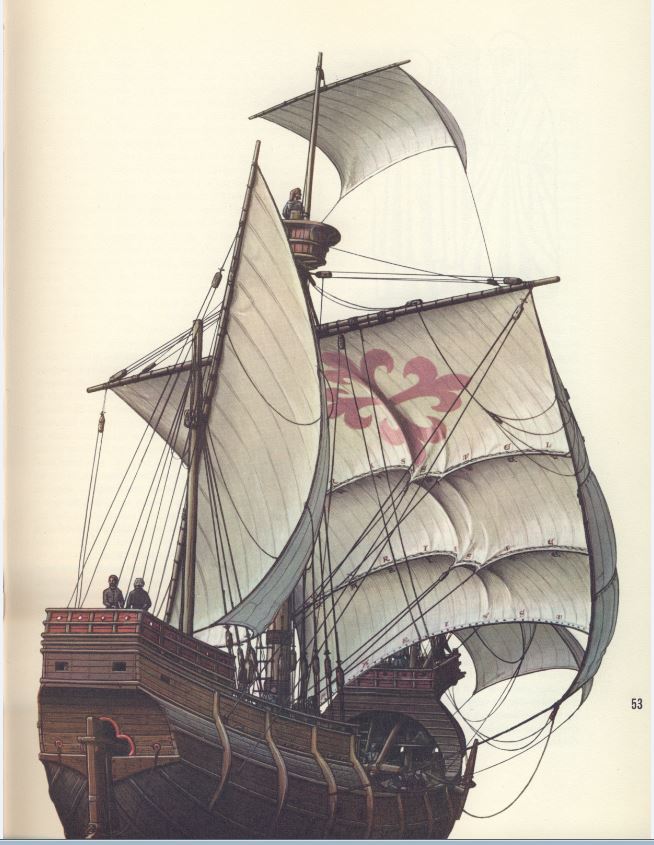 2-б. есть и другие изображения данной эпохи и по ближним параметрам к прототипам, каракки, нао и прочие каравеллы не были обделены вниманием, но у меня нет времени ни рыться в компе, ни составлять академический опус аргументированных обоснований, Алексей