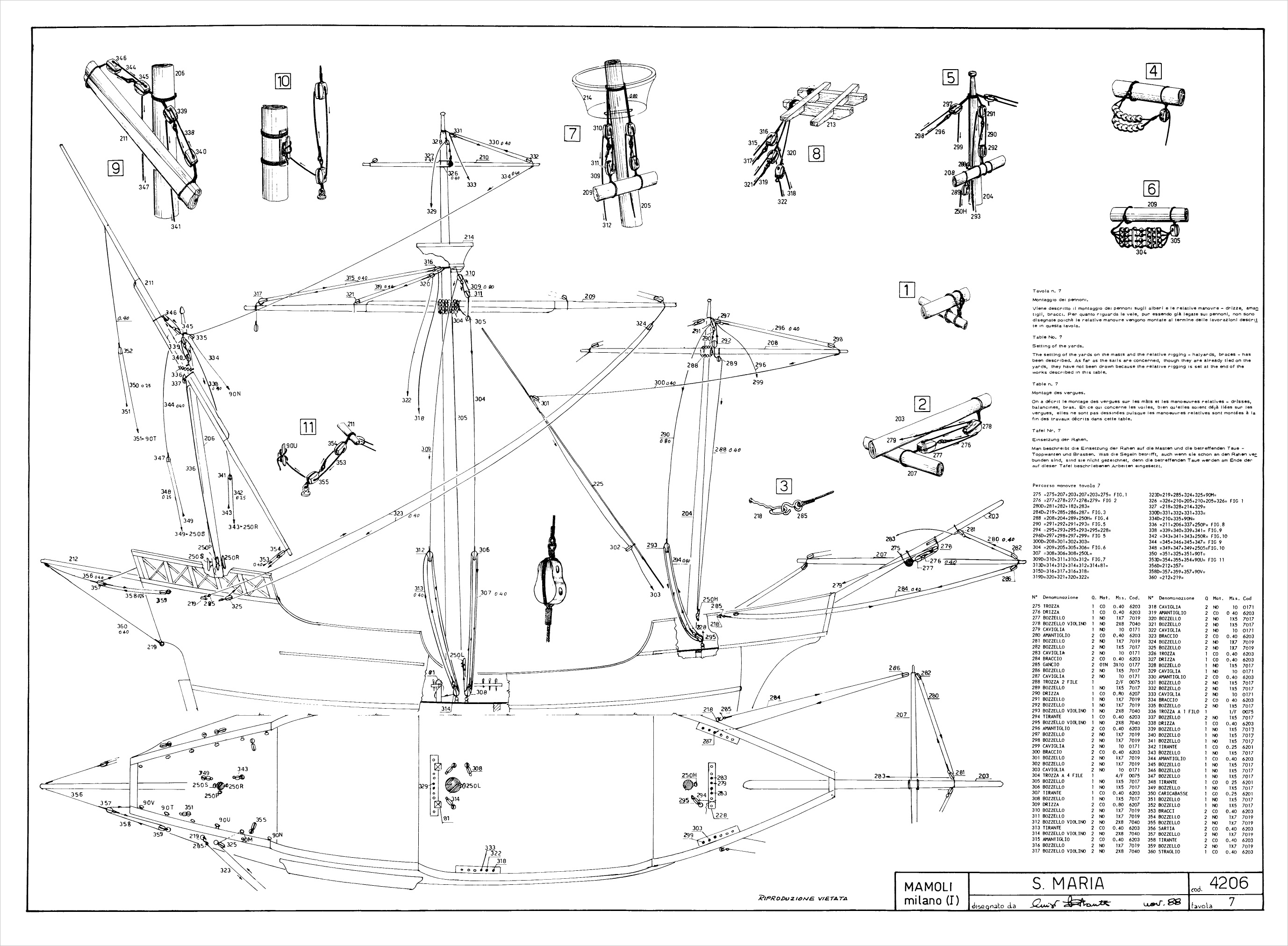 такелаж подробно показан в анатомии судов Колумба от Ксавьера Пастора - титульный лист этой анатомии я выше постил( книжку эту можно свободно в сети скачать если нет)... + чертеж рангоута и такелажа по Мондфельду и рисунки Бьорна Ландстрема, тоже выше я постил...