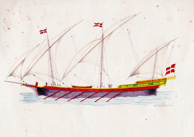 Второй недостаток латинского паруса - низкая эффективность при попутных ветрах. Тут либо прямые паруса выходят на первый план - вот и существовали корабли со смешанным парусным вооружением, ...