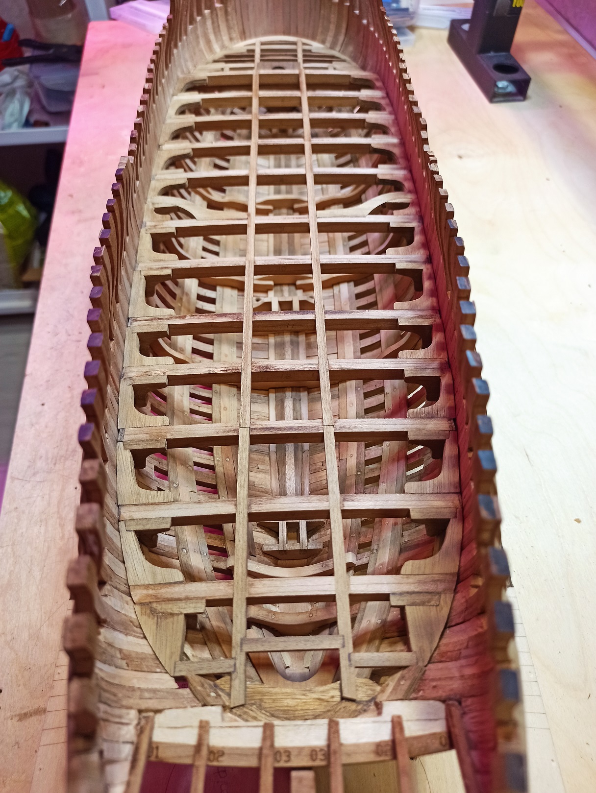 Обрешетил окончательно небольшой фрагмент каркаса нижней палубы ( орлоп дек) носовой оконечности.