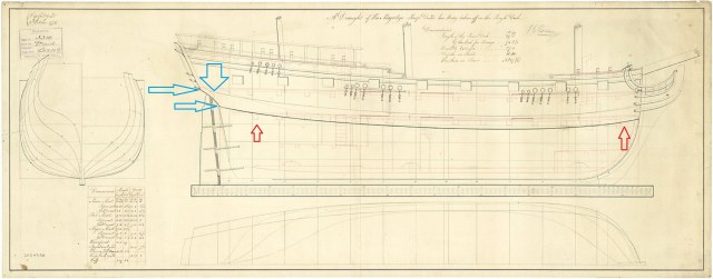 Вот чертежи из набора: нижняя палуба, линия бархоута на втором ( думаю, приблизительно).
