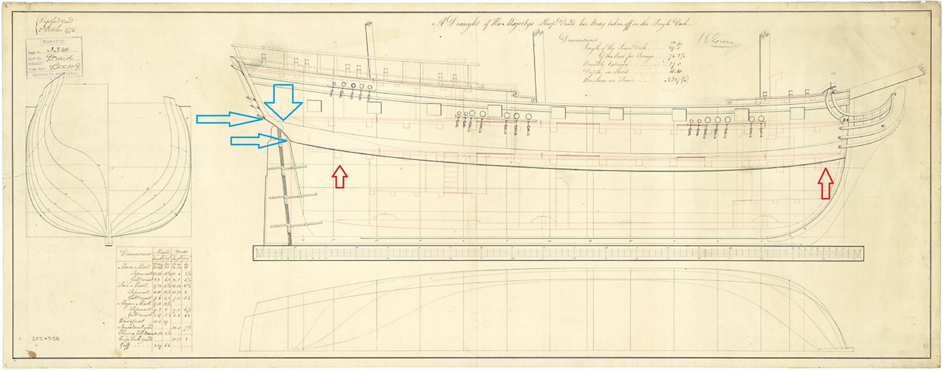 НашЕл тут примеры у Чапмена, в его знаменитом альбоме, где продемонстрированы чертежи реальных кораблей, у которых бархоуты не в кормовой подзор упираются. ( Понятно, конечно, что это не мой случай с Друидом).
