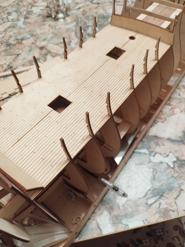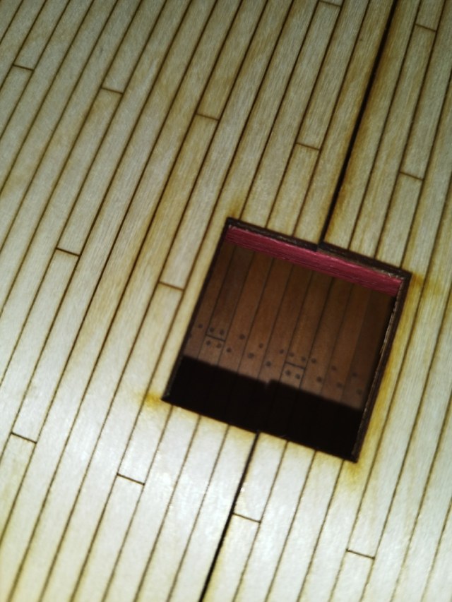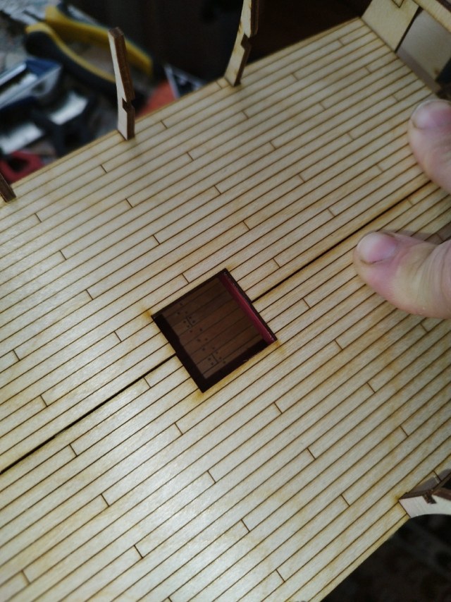 Сделал подложки имитацию второй орудийной палубы, которую будет видно через люки.