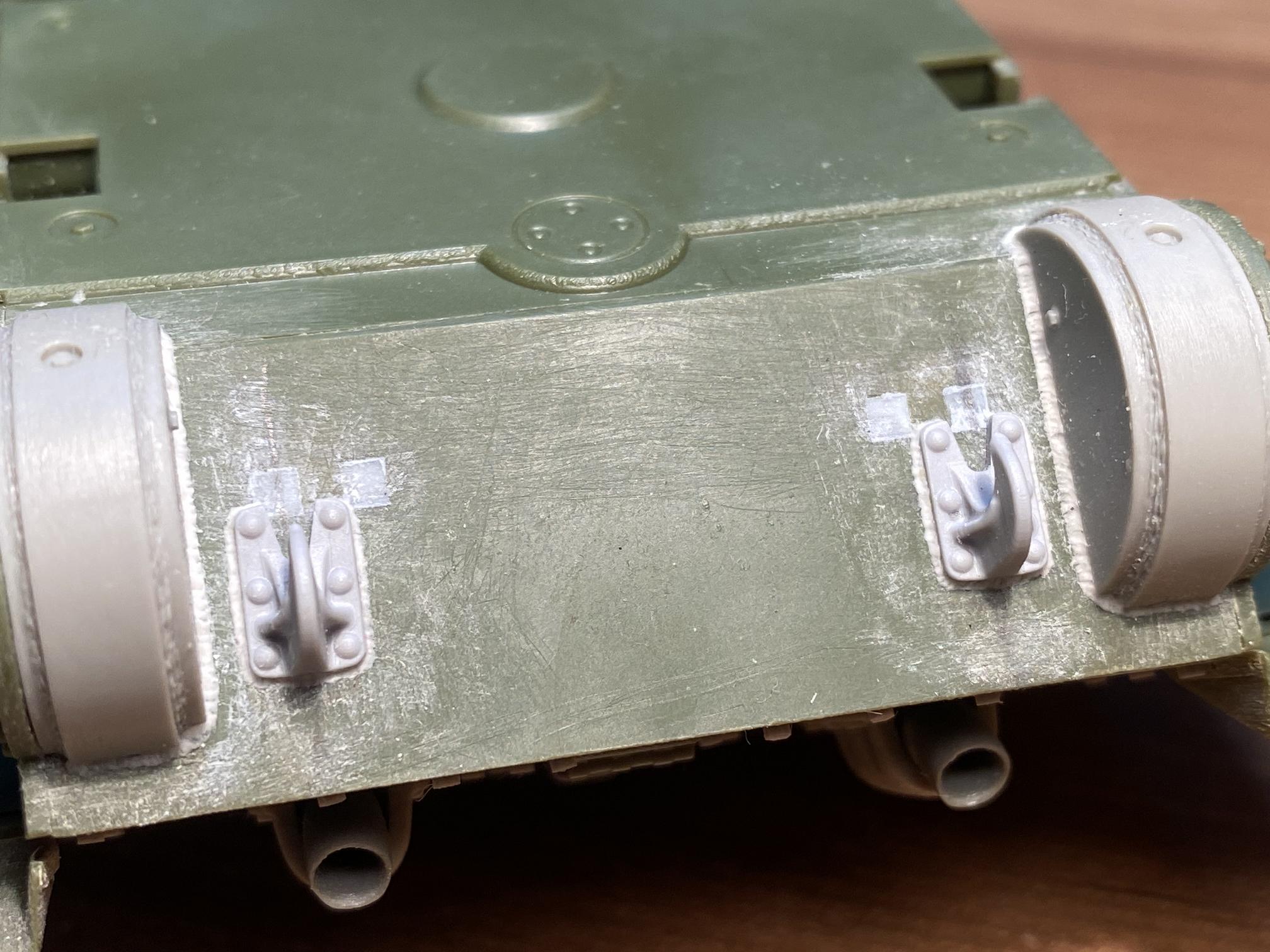 На сталинградку установил решетки и заменил буксировочные крючья на миниармовские. Дрегоновские по сравнению с ними мельче и имеют не совсем правильную форму