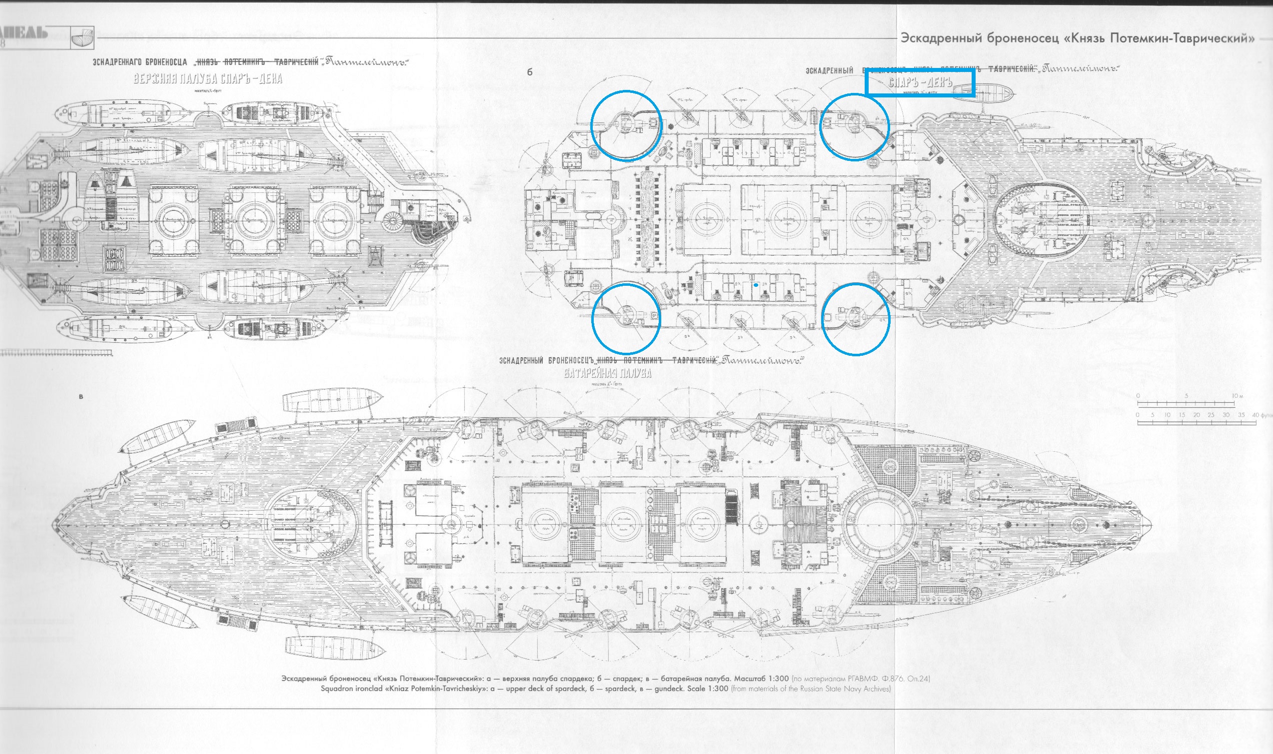 не Вы ли только что хвалились, что тоже имеете фотографии "Потёмкина", где ясно и чётко показана раскладка палубы?Фотографии показал - и вся недолга.