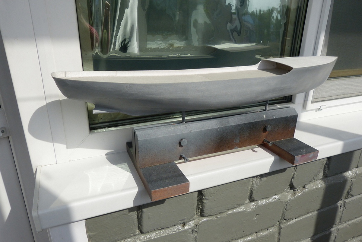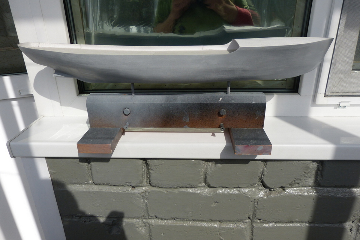 ...Убрал ещё лишнего с палубы шпона, посложней было, но с помощью бормашинки легко всё получилось... Дальше заклею скотчем и буду пробовать приклеить на основу шпон.