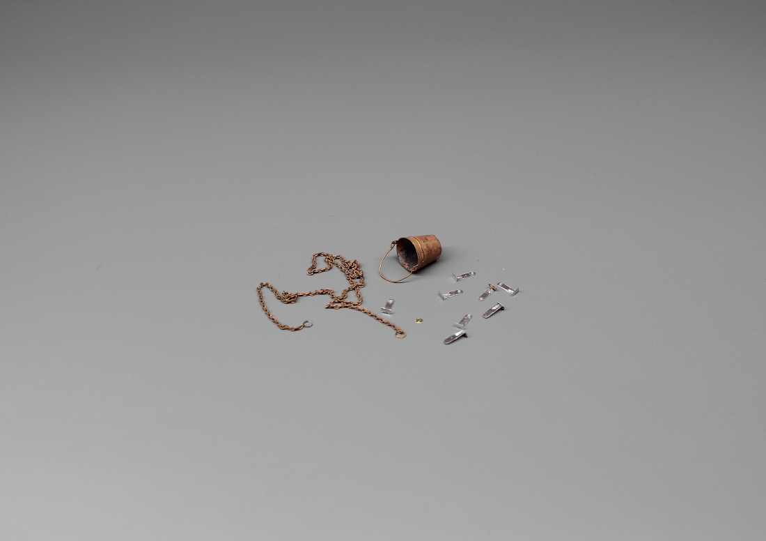 Добавлю кое-какую мелочевку для "оживления" модели. Цепь,которая долга у меня лежала, спаял ведро от микродизайн и сделал петли для открывания верхних боковин надстройки.