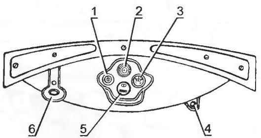 1 замок зажигания; 2 — указатель уровня топлива; 3 амперметр; 4 — кнопка регулировки состава топливной смеси; 5 — спидометр; 6 — кронштейн рулевой колонки