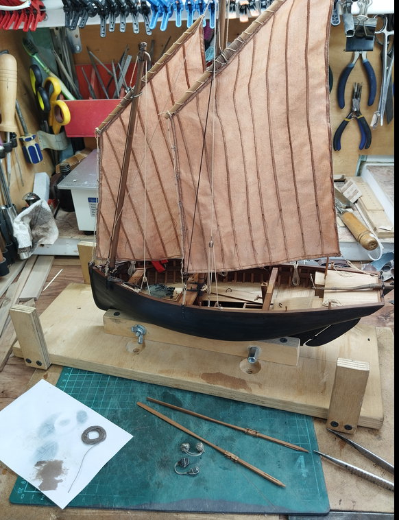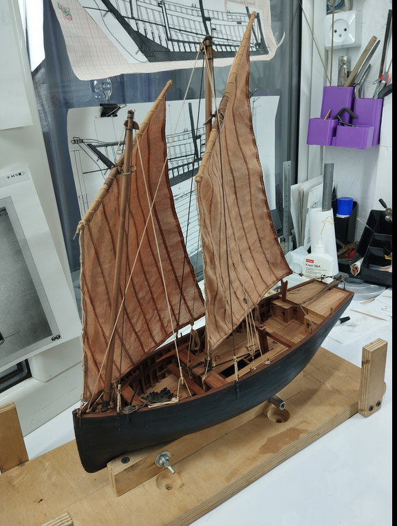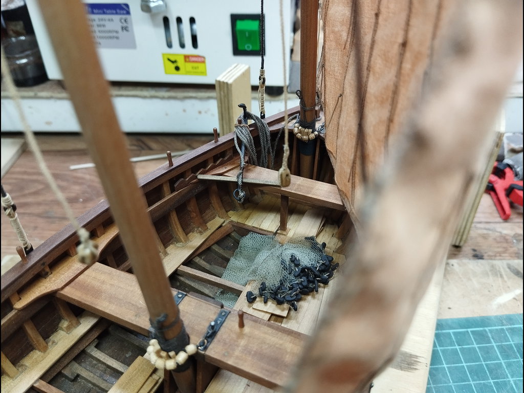 Ну и финальная сборка. Доделал пару элементов на корпус.Подготовка канатов с блоками. Обвязка, укладка................