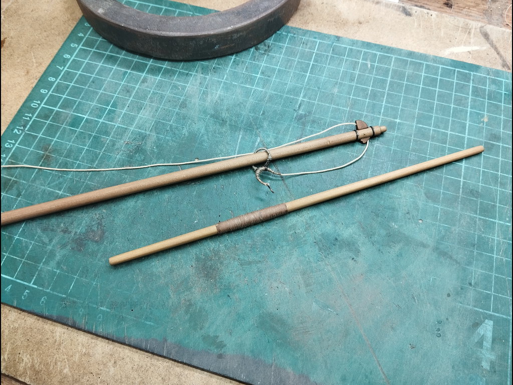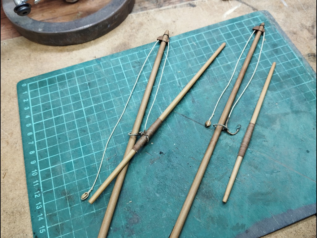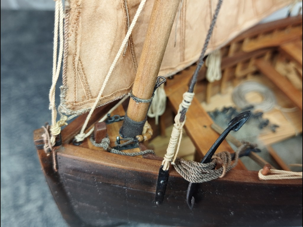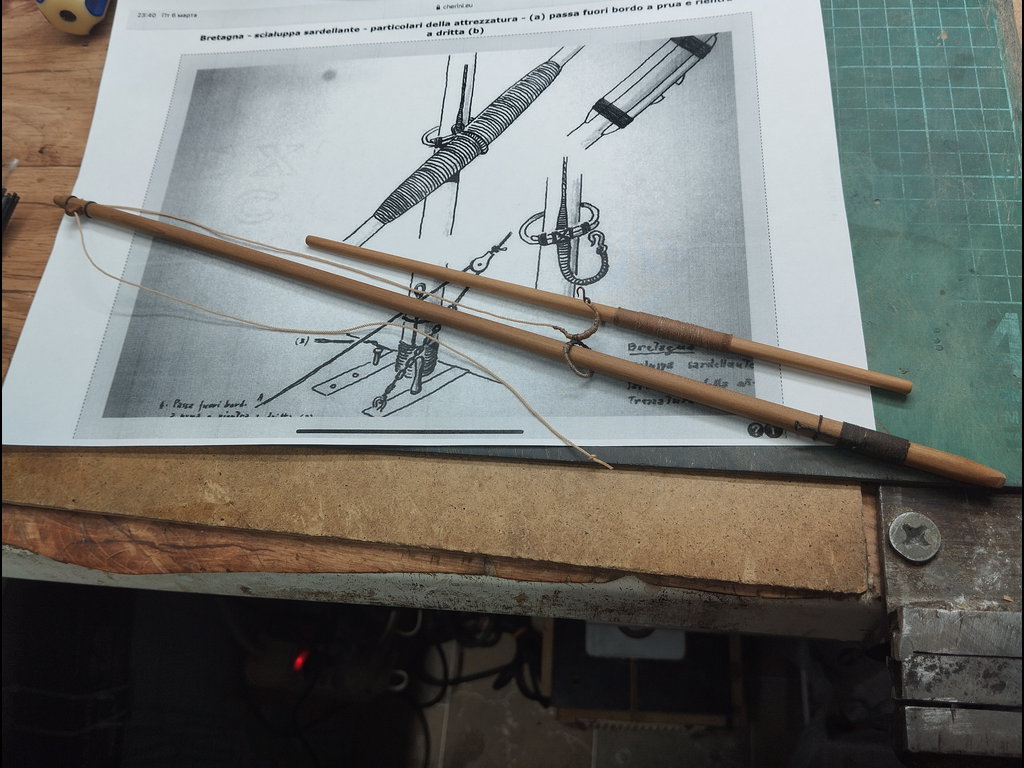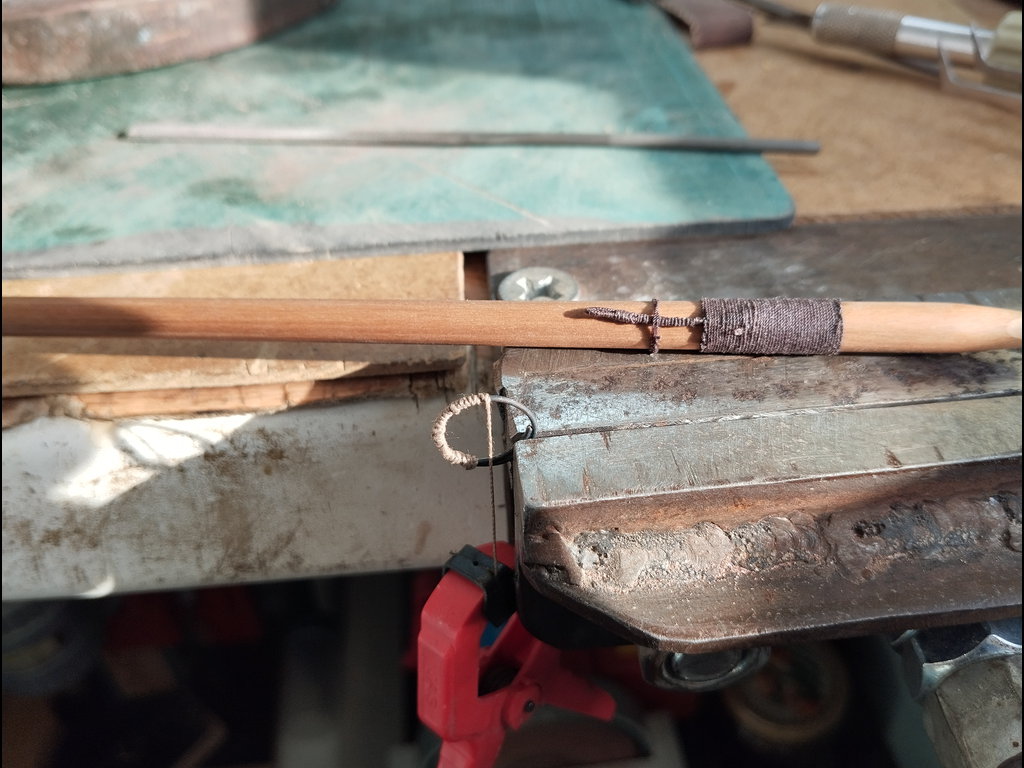 Приступаю к такелажу. Первым делом обвязка мачт.... Проводка фала. бугель..........