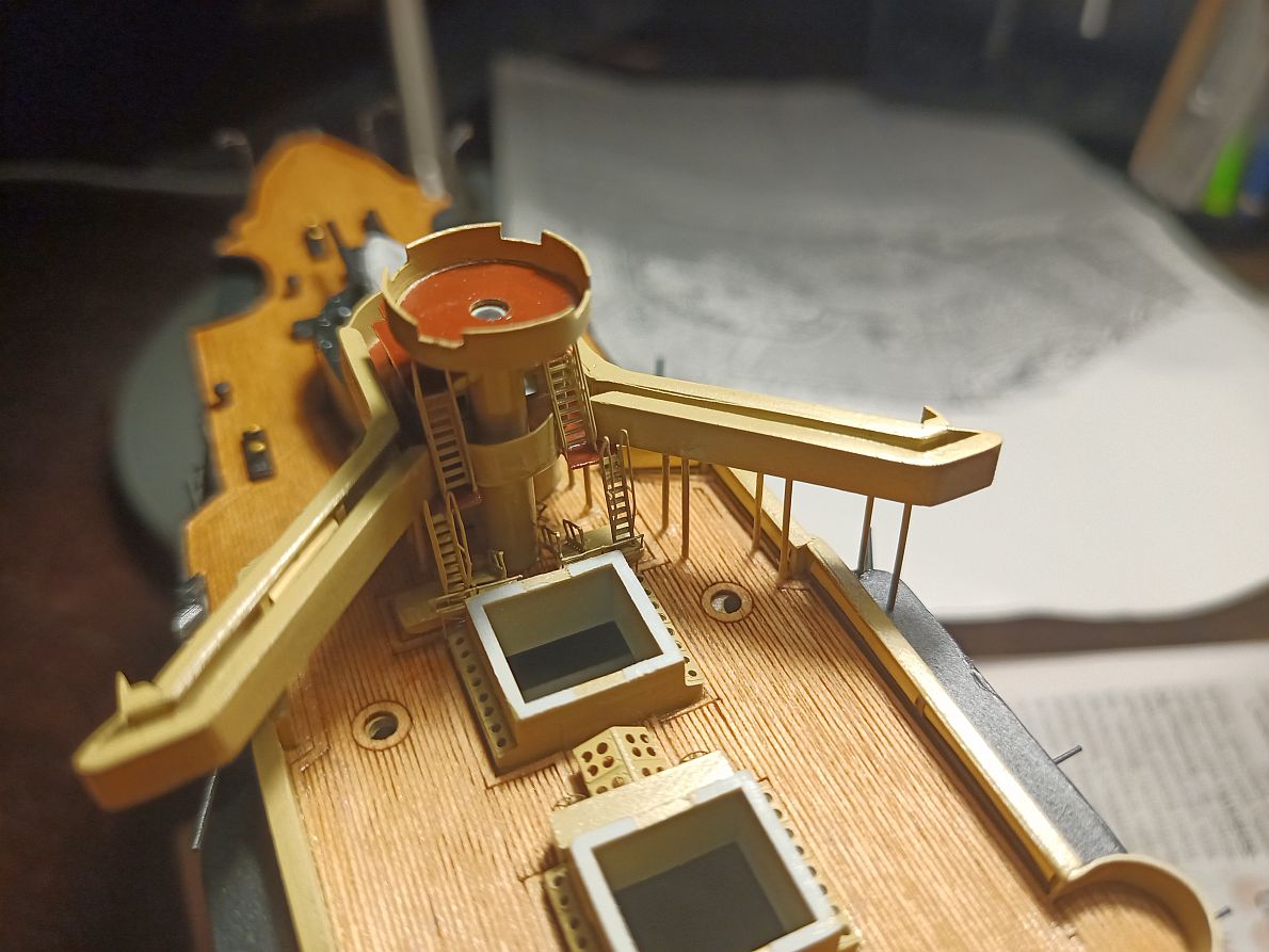 Юра все красиво, но трапы на носовой рубке все же немного портят общий вид, особенно нижний, такое впечатление что матросы на попе с него съезжать будут. Угол не тот из за люка, а люк кажется переразмерен. Хотя возможно когда все заставится не так будет бросаться в глаза.