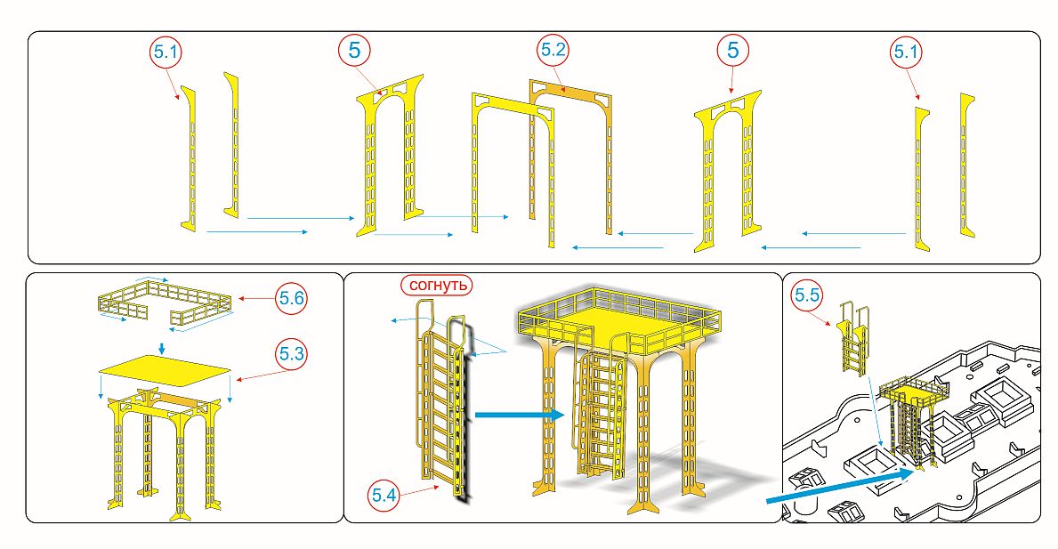 Вот инструкция по сбору прожекторной площадки. Рисунок из книги. Имеющийся чертёж (только вид сбоку). Куски фото. Вид, как это сделано у Саши, на его Потёмкине.