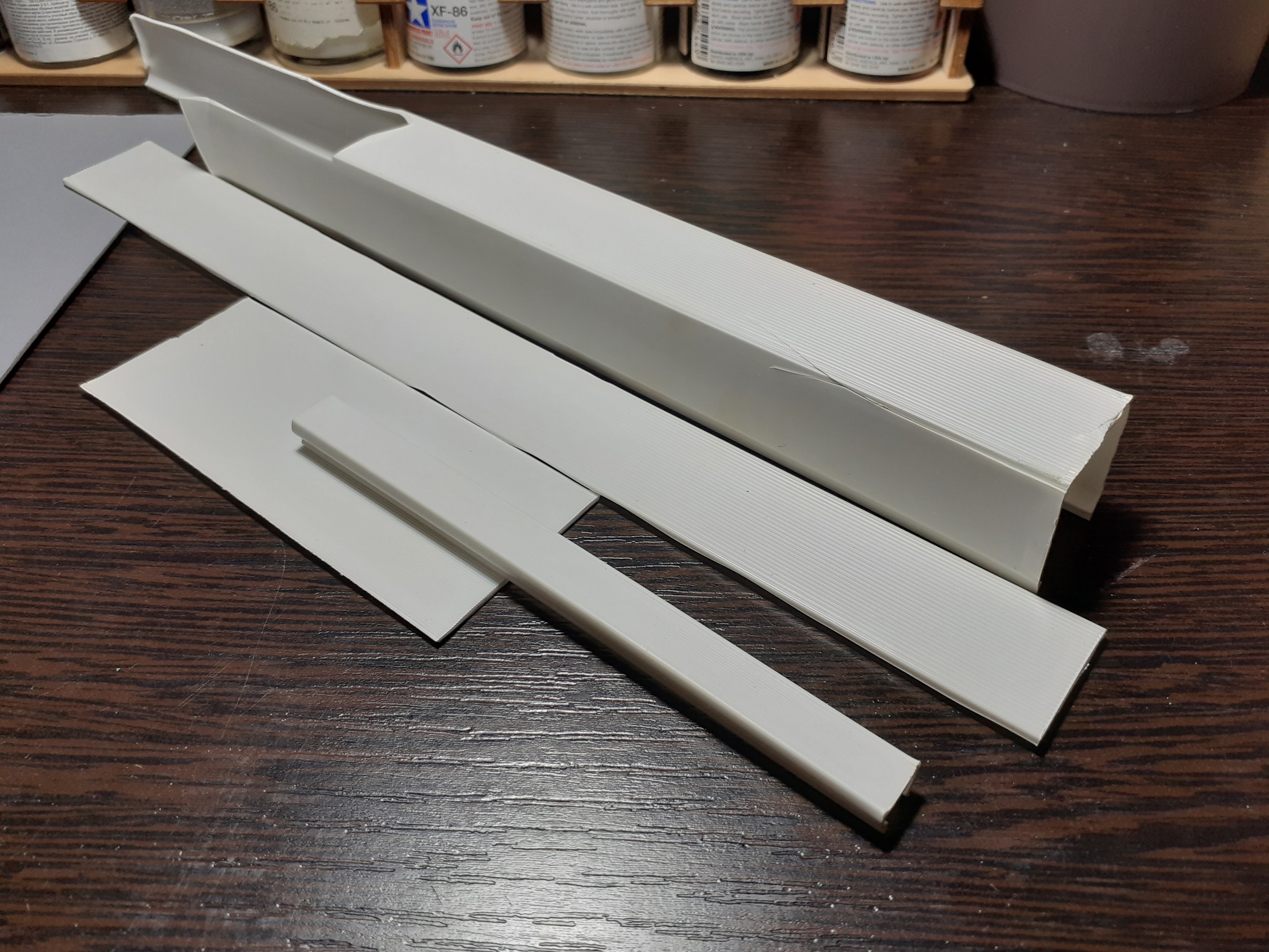Взял мелкую гофру от кабель-канала, вырезал и подогнал контуры, вклеил поперечины, вырезал проёмы под оси винтов. Каналы (или короба) продаються в магазинах по электрике. Имеют разные размеры и шаг гофры...