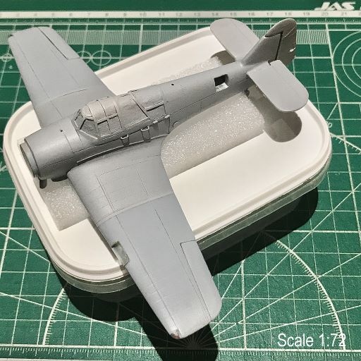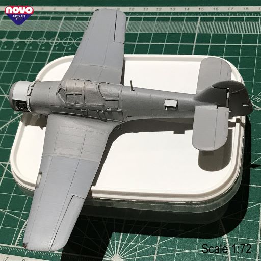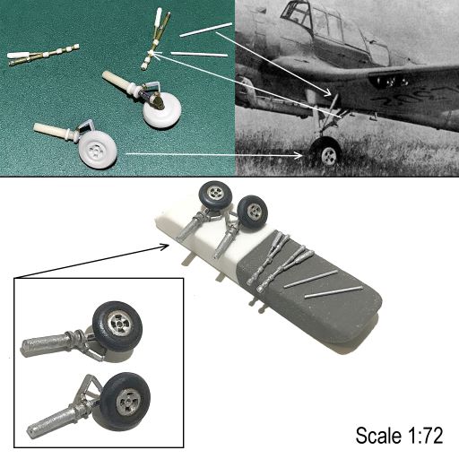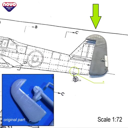 Изнаборные стабы были очень толстыми и не ложились в чертежи в плане. Поэтому, было принято решение изготавливать стабилизаторы с нуля. Проблематичным было переделать место примыкания стабилизаторов к фюзеляжу: ибо, пришлось стачивать толстенные посадочные места под изнаборные толстые стабы на уже склеенных и расшитых половинах фюзеляжа.Но, вроде как, получилось. Что интересно, то РН хорошо ложится в образмеренные до 72-го масштаба чертежи. Так же установил хвостовое колесо слегка переработав данную деталь. Теперь модель откладывается в сторонку - и, можно переходить к капотному пространству...
