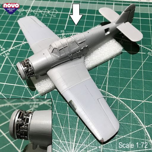 У mkIII фюзеляж перед капотом заужается в месте прихода створок. Этот момент воспроизведен на отливках половинок фюзеляжа.