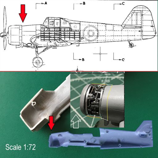 Если честно, не понял сложных объяснений, но стал более уверен, что капот не похож. Диаметр должен быть больше, чтобы юбка (в закрытом положении) ровно ложилась на фюзеляж. Смотрите фото и чертежи, пока не поздно. Думаю, иначе можно потерять облик самолета...