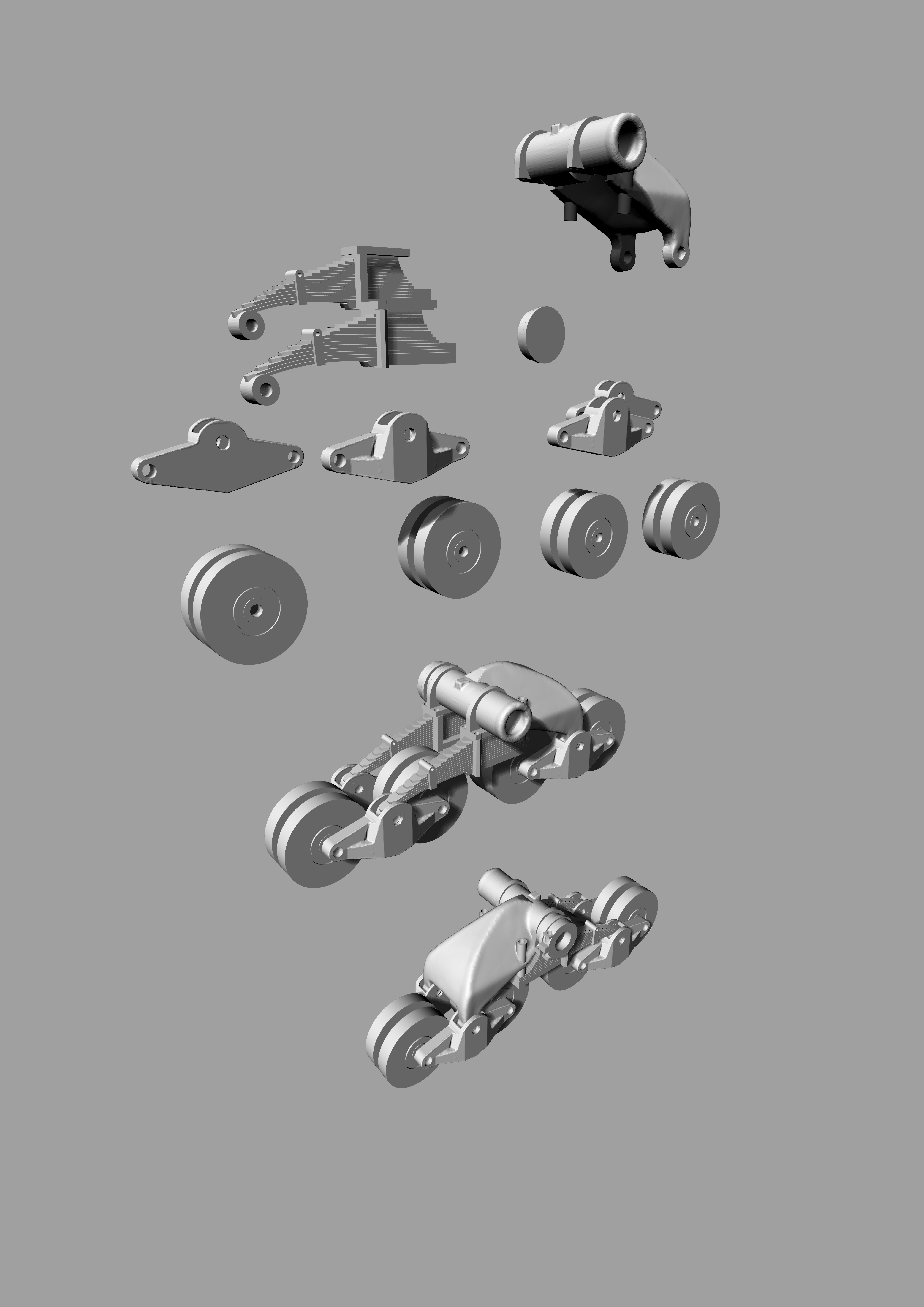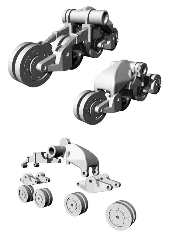 Проектирую в риноцерос. Вот для примера детали тележек танка Т-26 раннего и позднего типа в 1-35.
