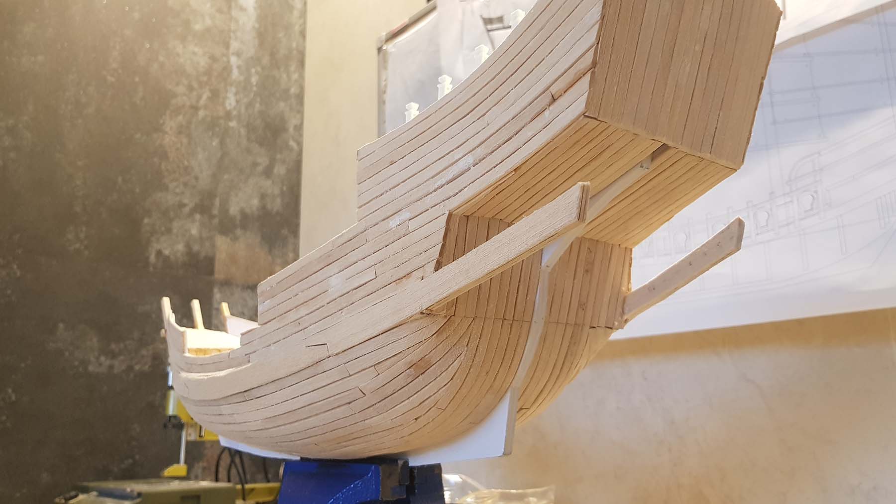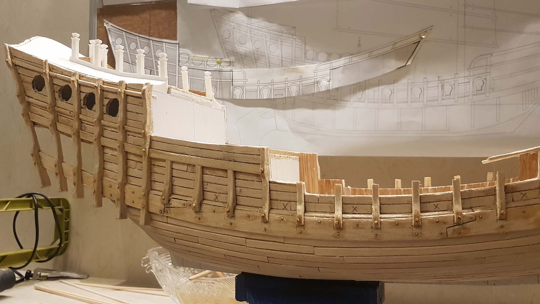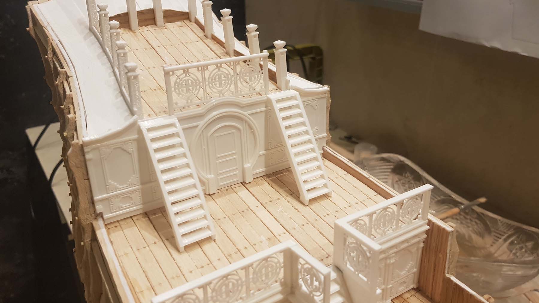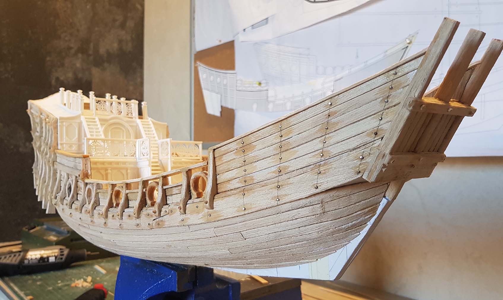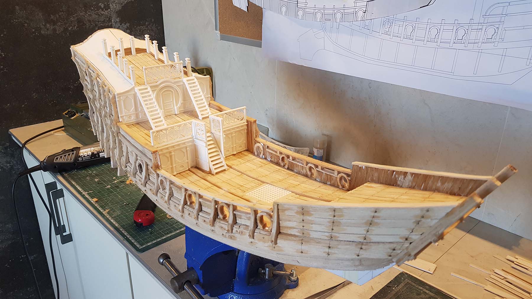 Начал делать верхние планширы. Сначала поставил стойки