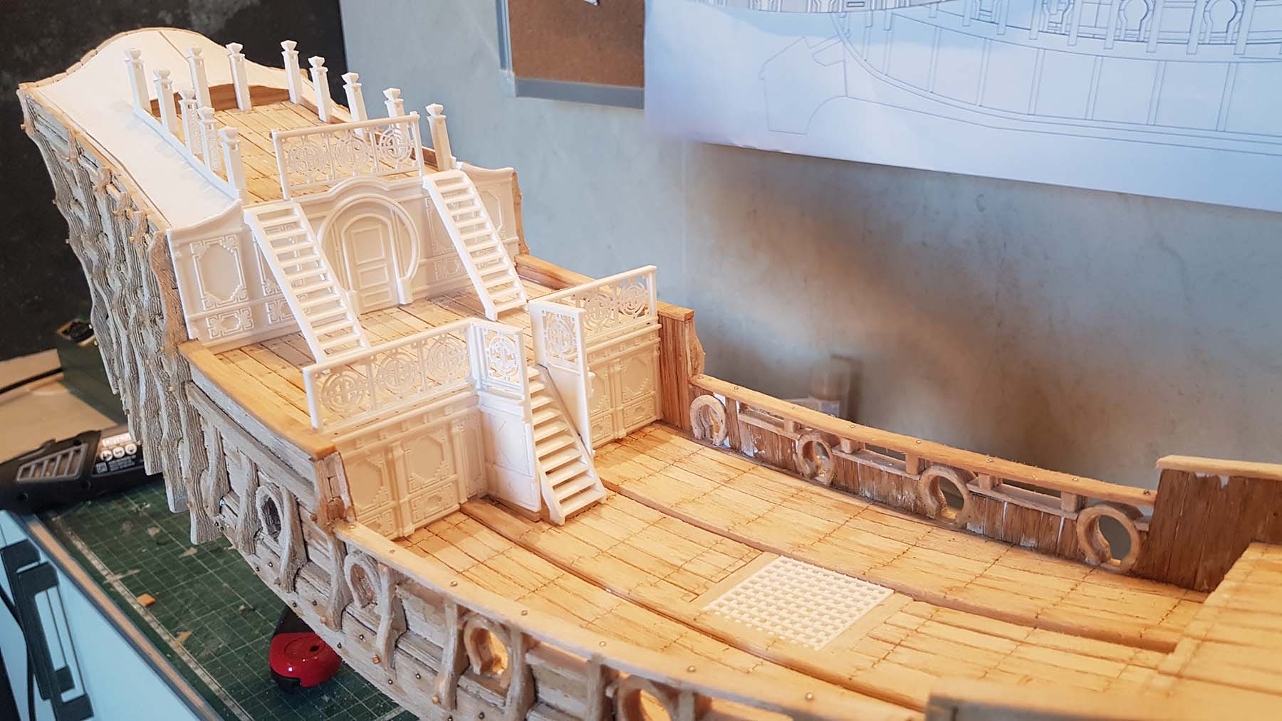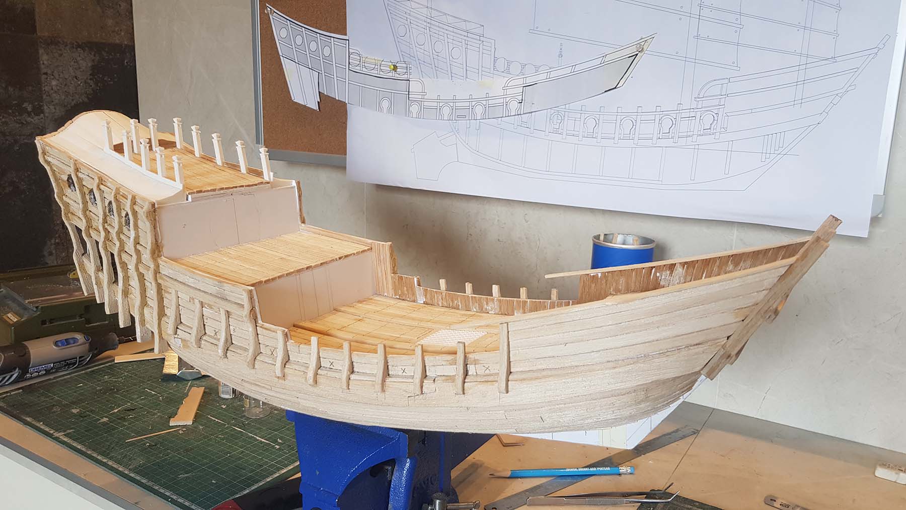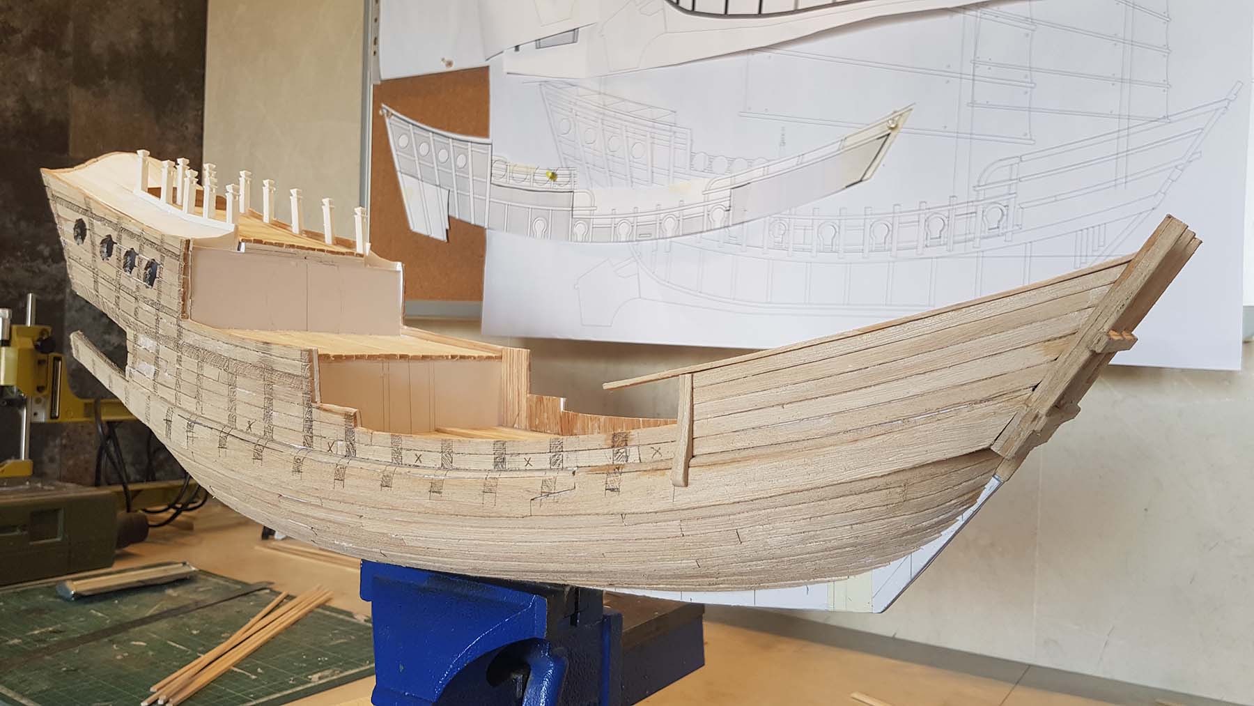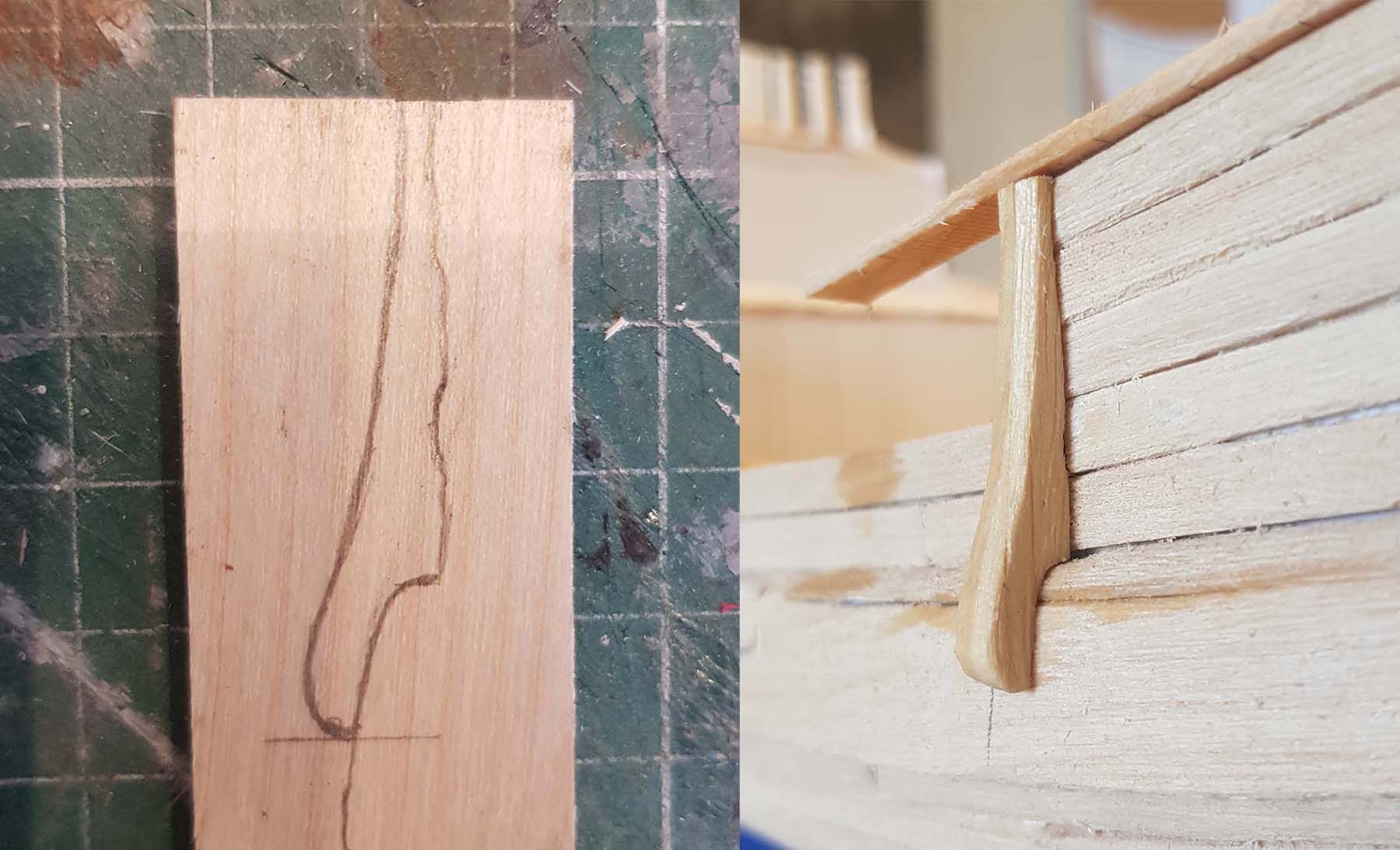 Начал делать верхние планширы. Сначала поставил стойки