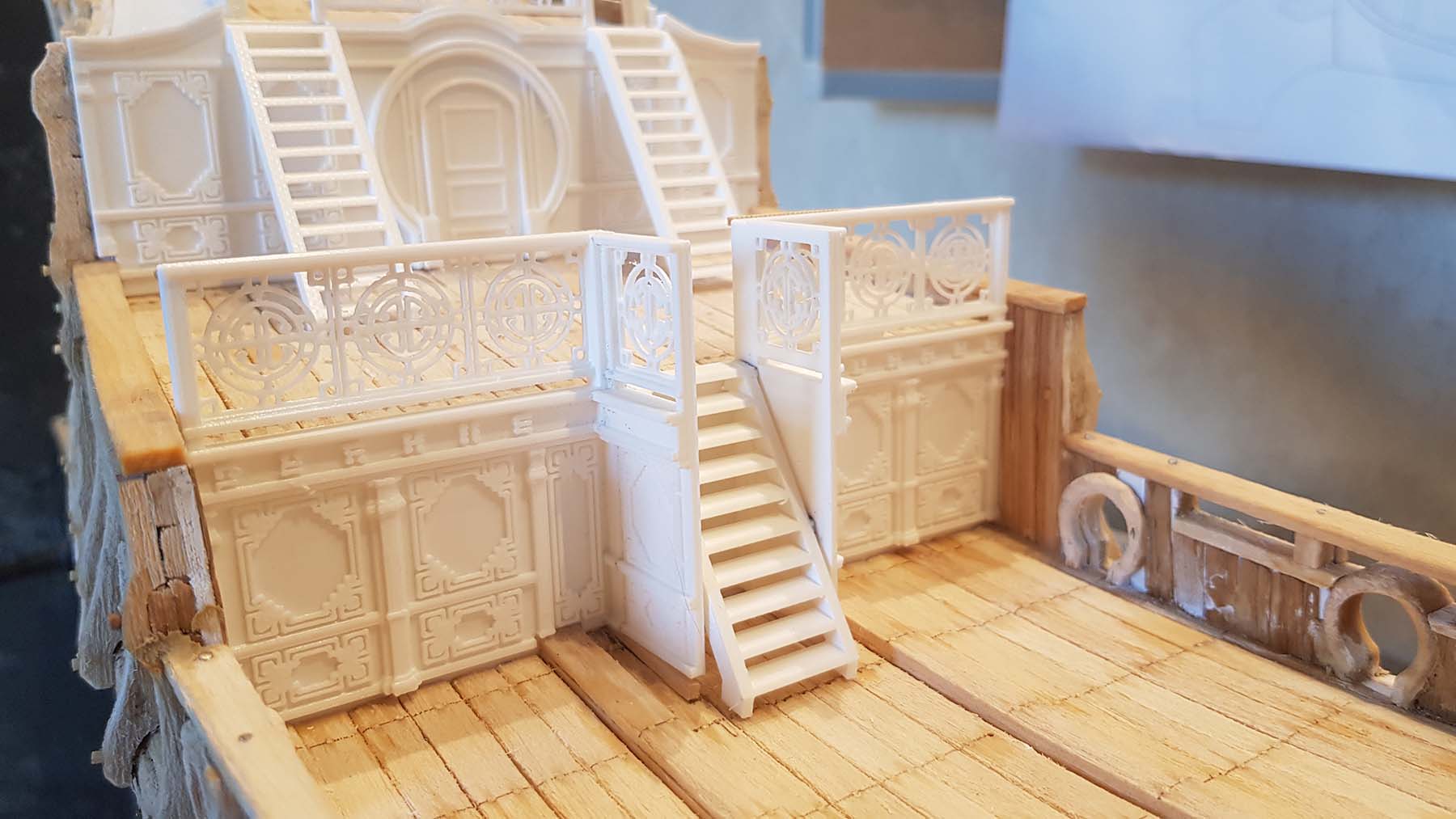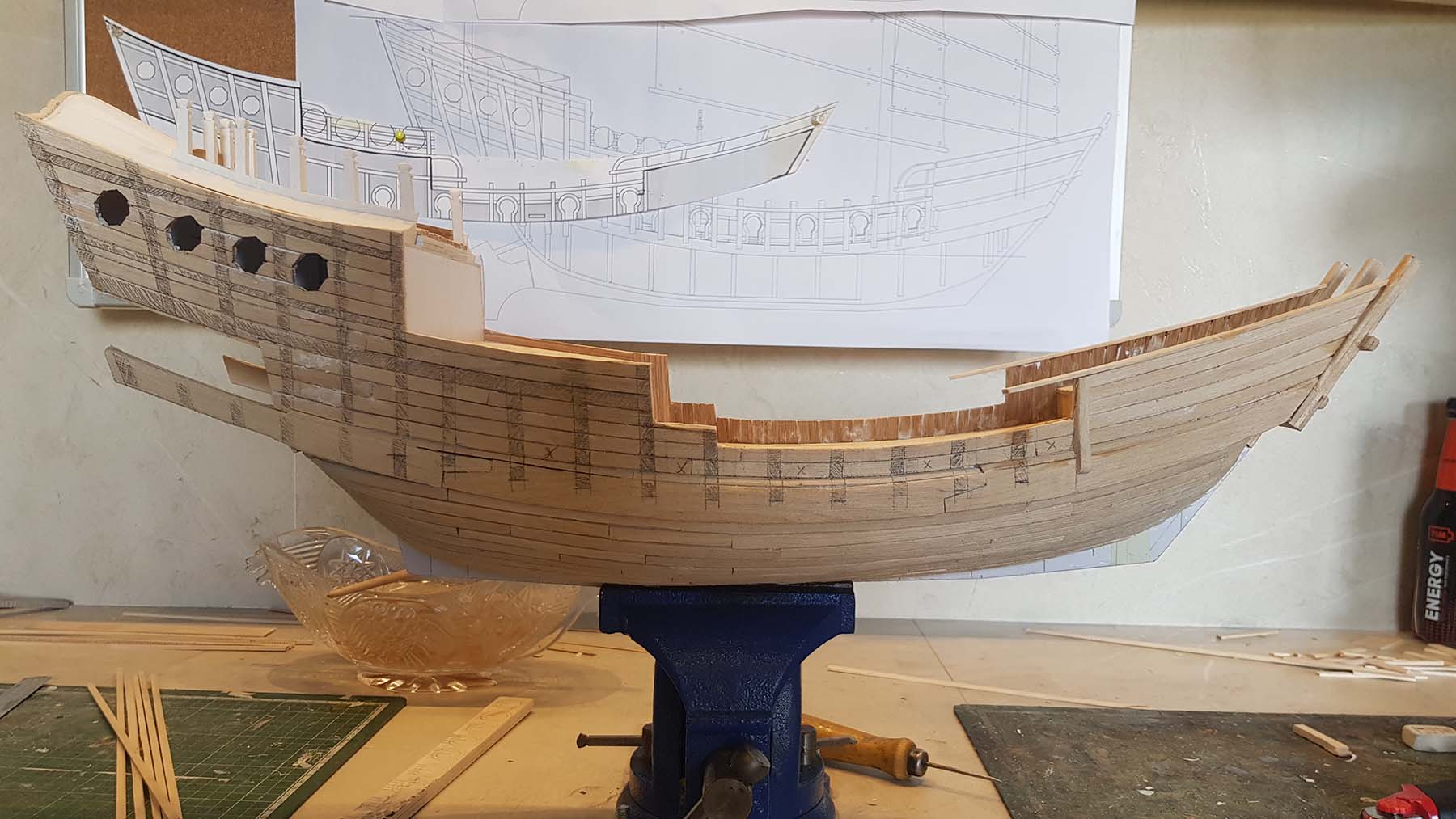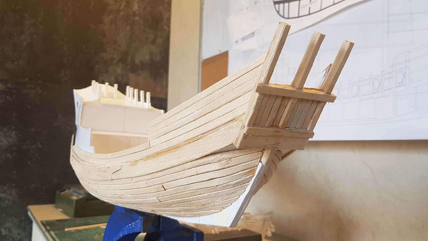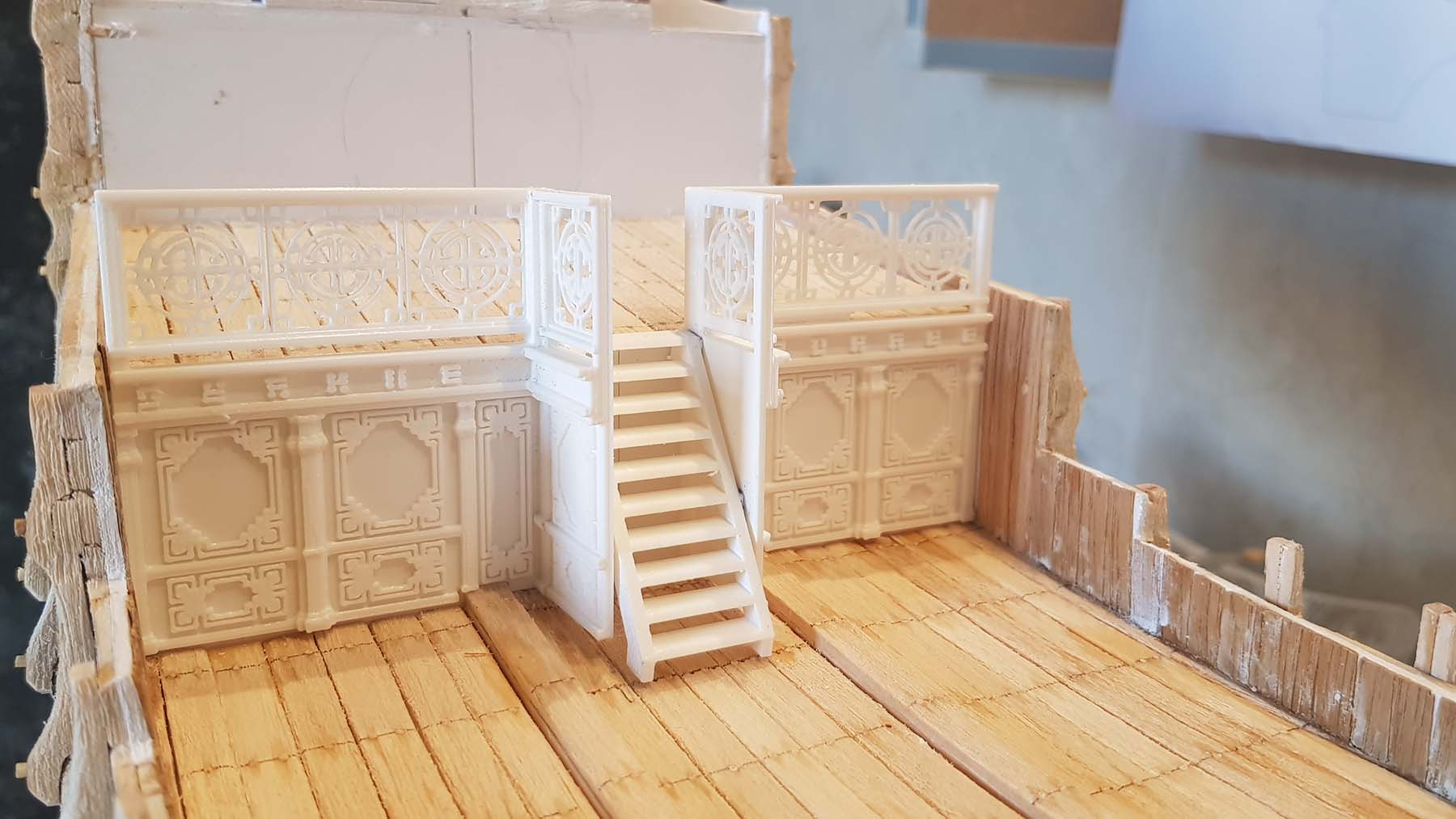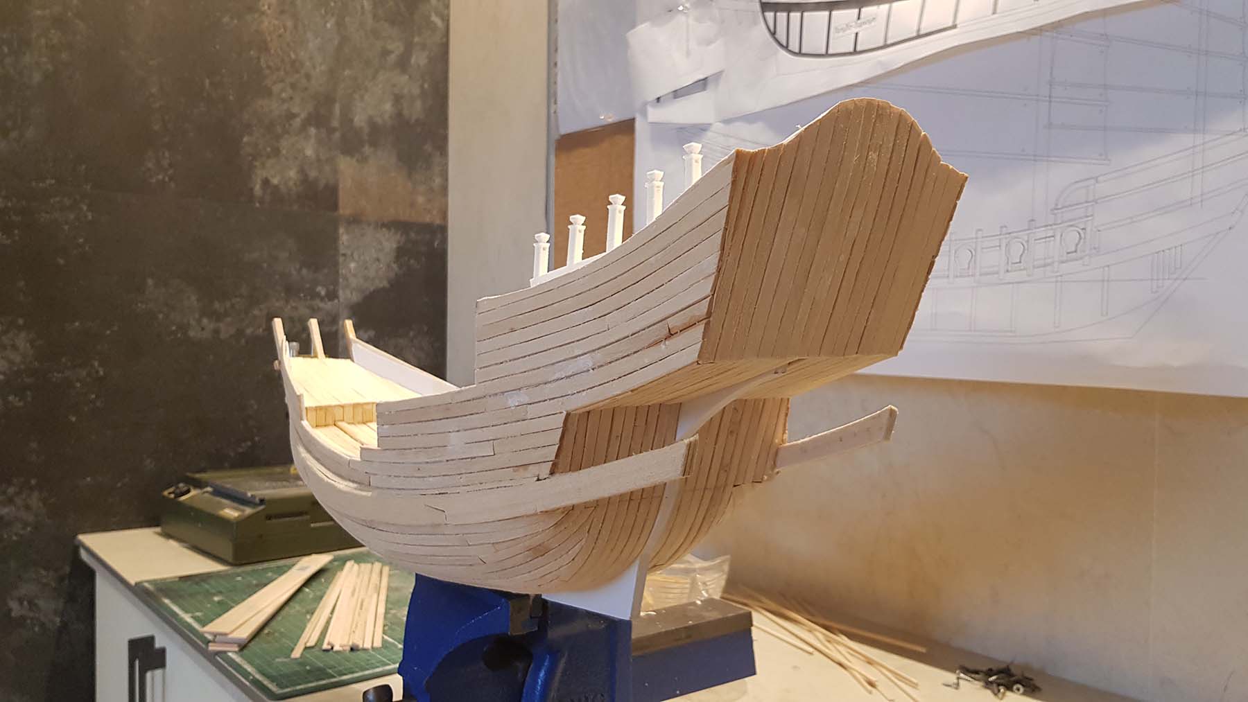 Начал делать верхние планширы. Сначала поставил стойки
