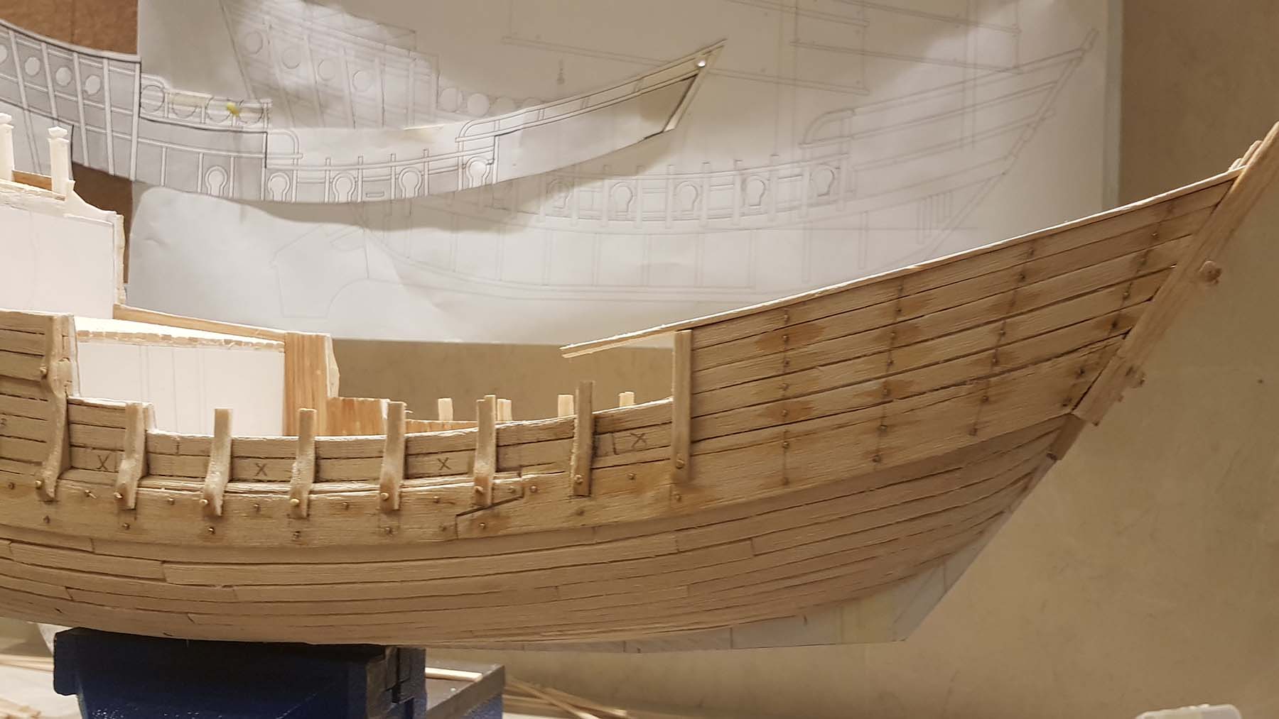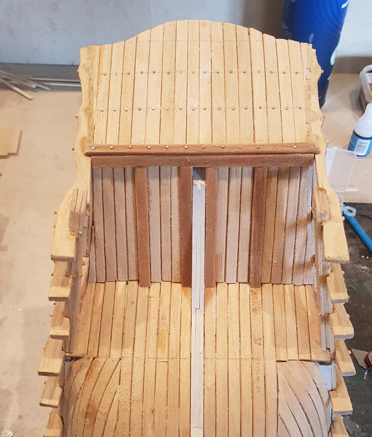 Дополнил гвоздевание бархоутов и досок обшивки бортов булавками с утолщенной головкой D1 мм