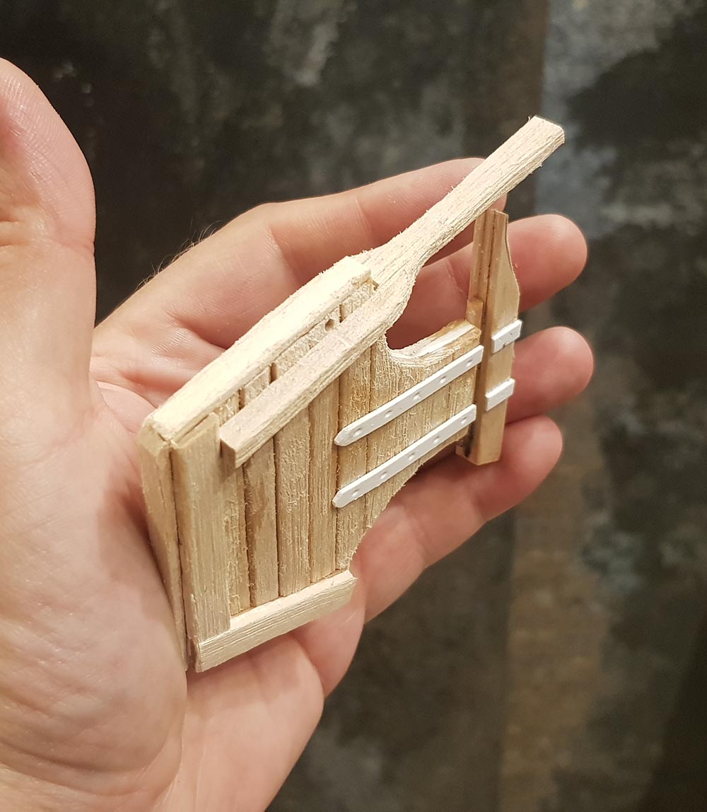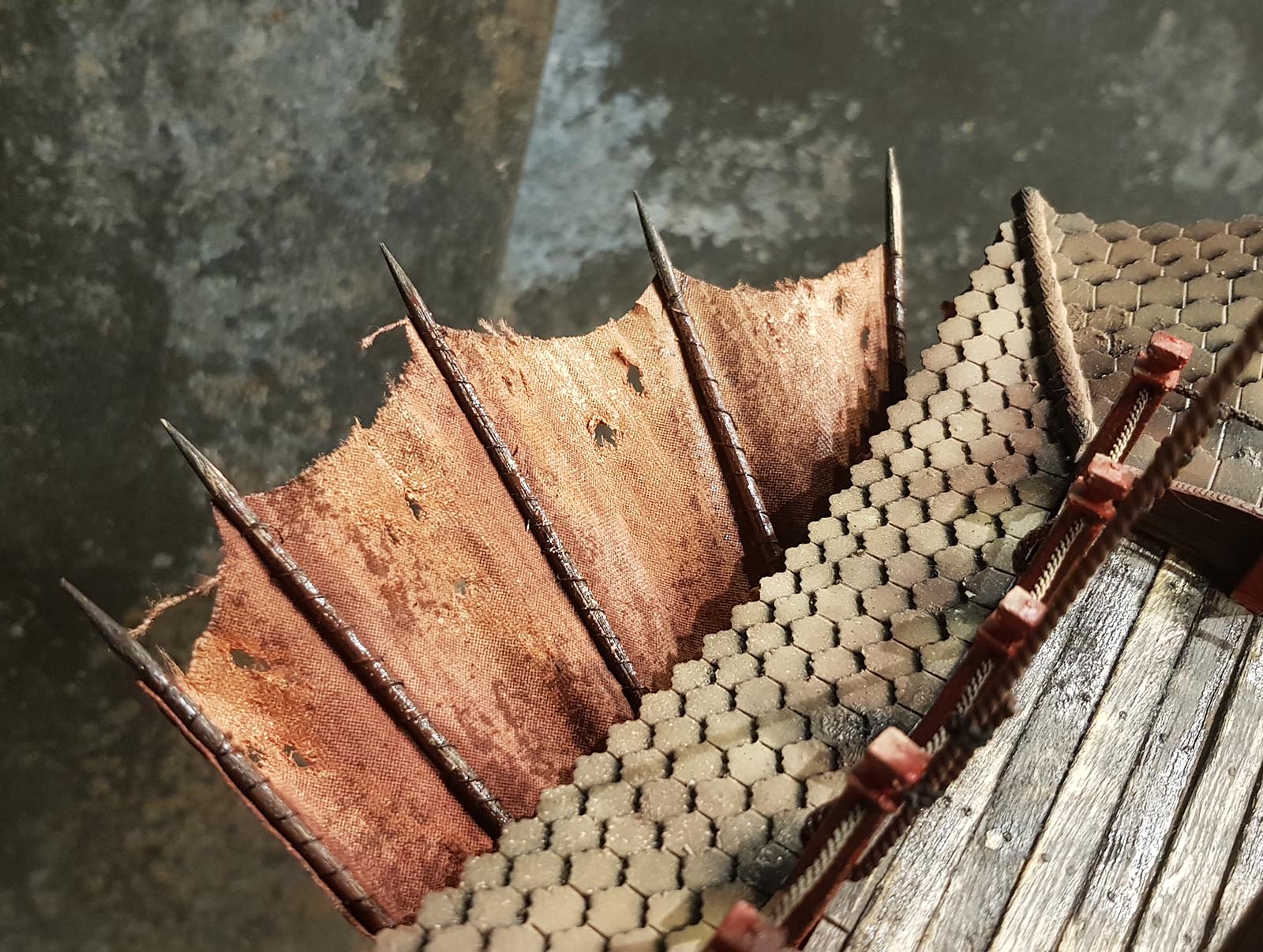Далее из шпажек толщиной 3 мм сделал рейки и пришил к парусам