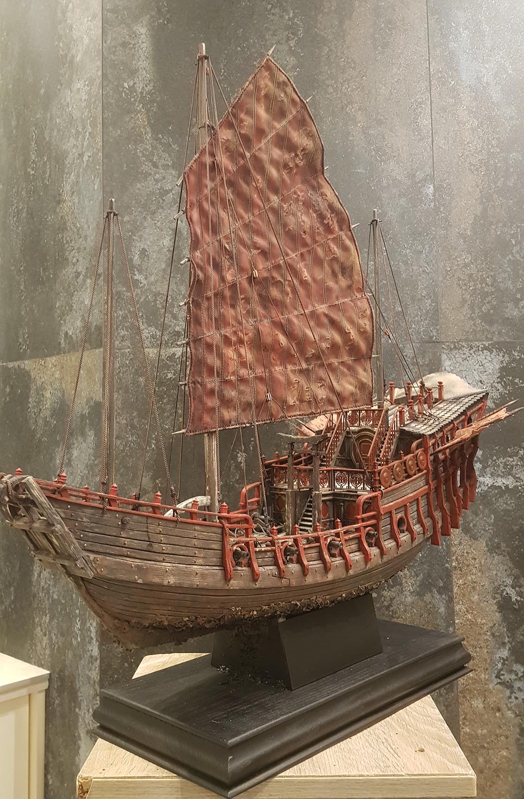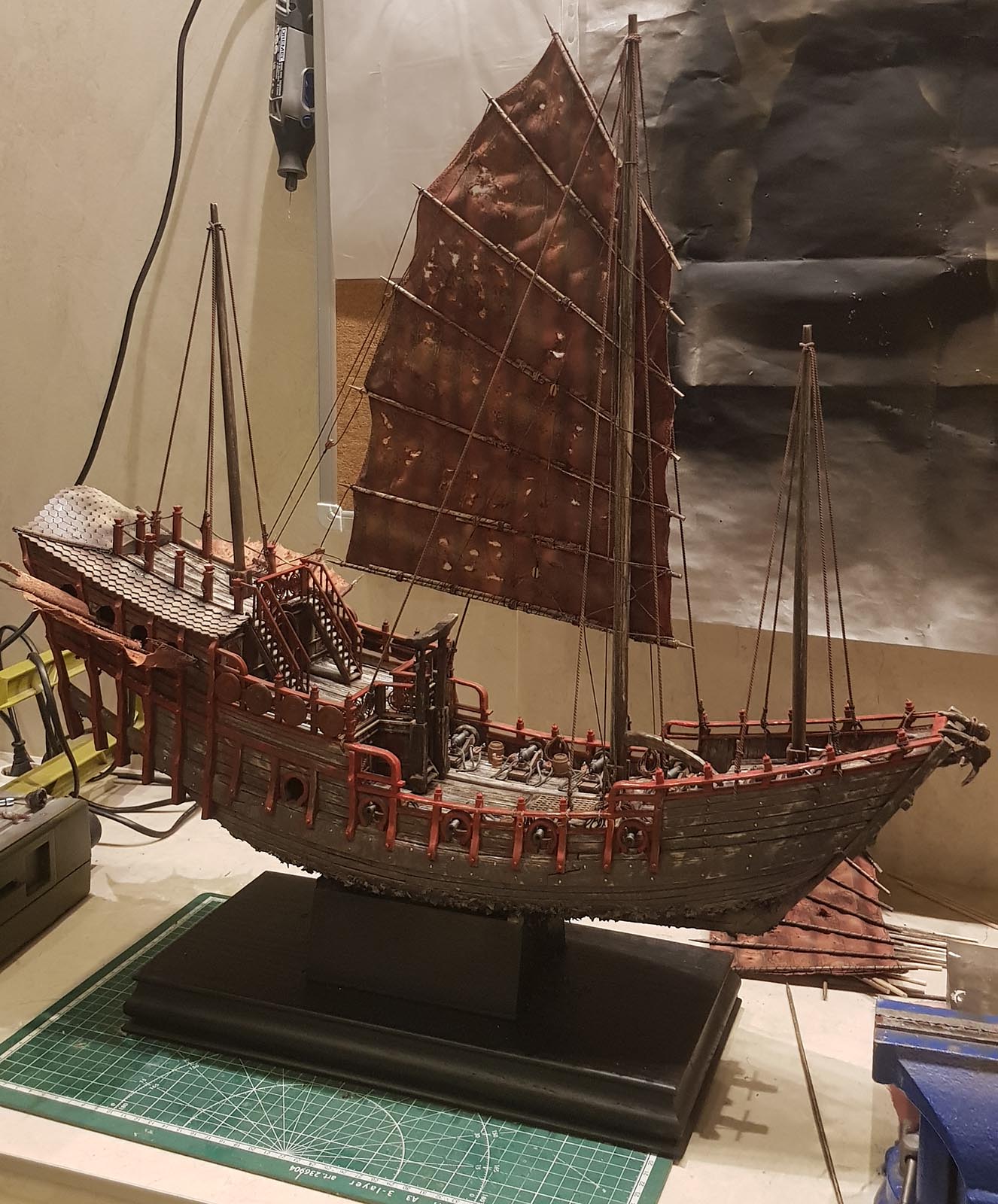 Да никак. Есть 4-5 фото с фильма, есть понимание что это за тип корабля и что за тип парусов, а дальше начинаем копать. Есть много информации каким был такелаж на таких парусах. Есть даже вот такой сайт: https://sketchfab.com/3d-models/20190405-junk-rig-full-sail-4a45e2e7bd10434185d9654c0fb9b527 - там много инфы можно подчеркнуть. Фильм позволил довольно детально рассмотреть корпус и палубу, ну а что не рассмотрел так додумаю и придумаю
