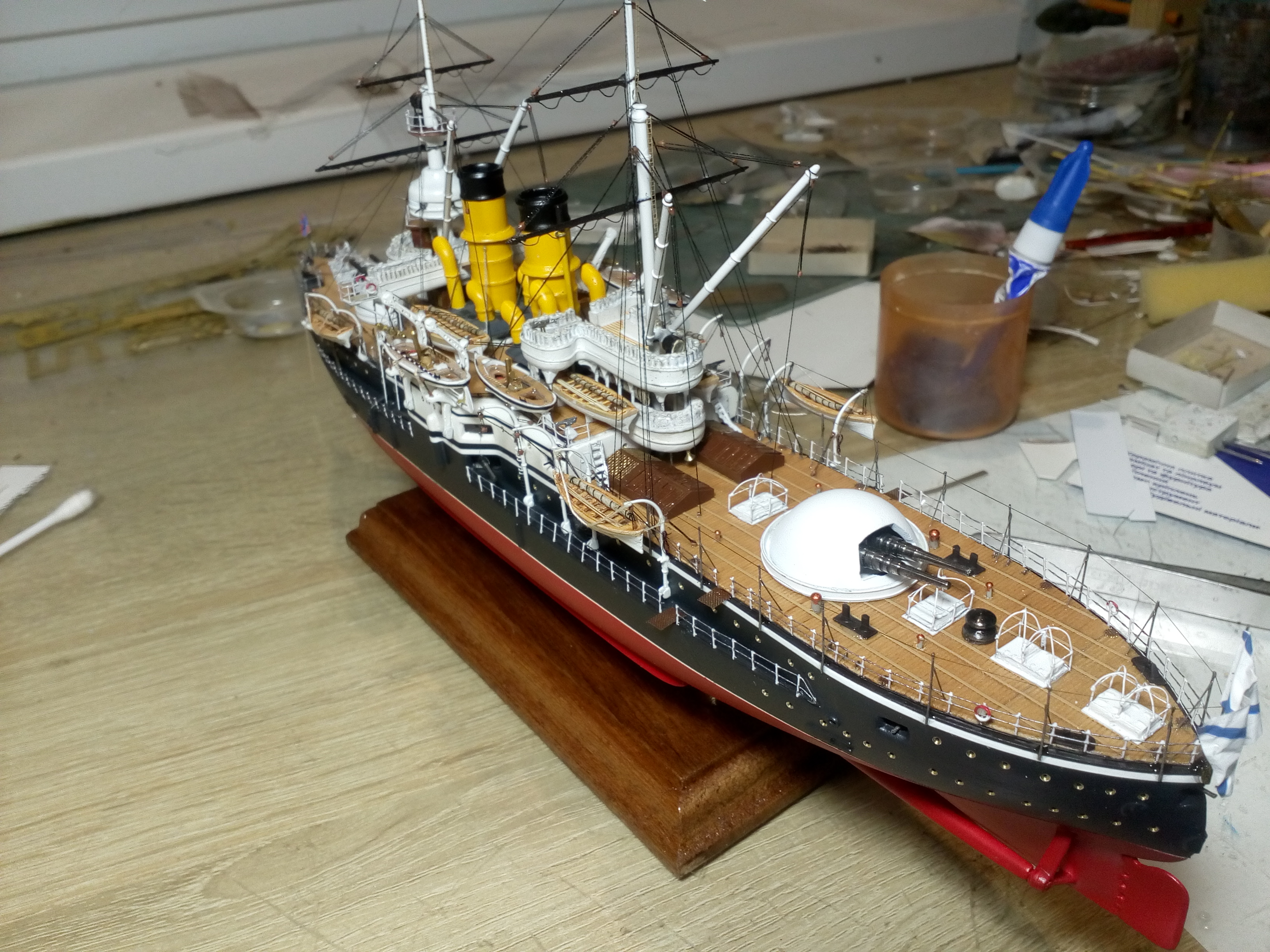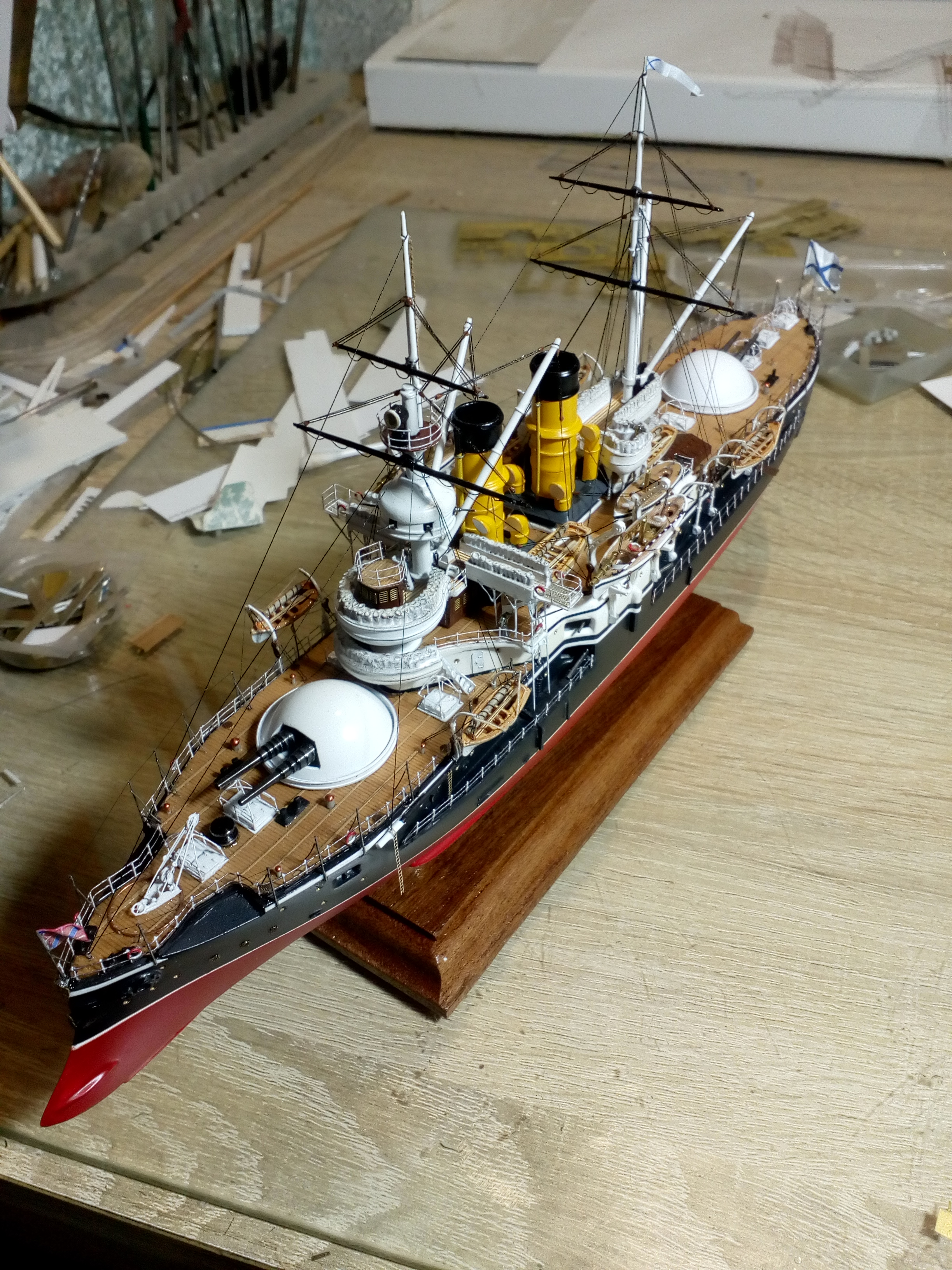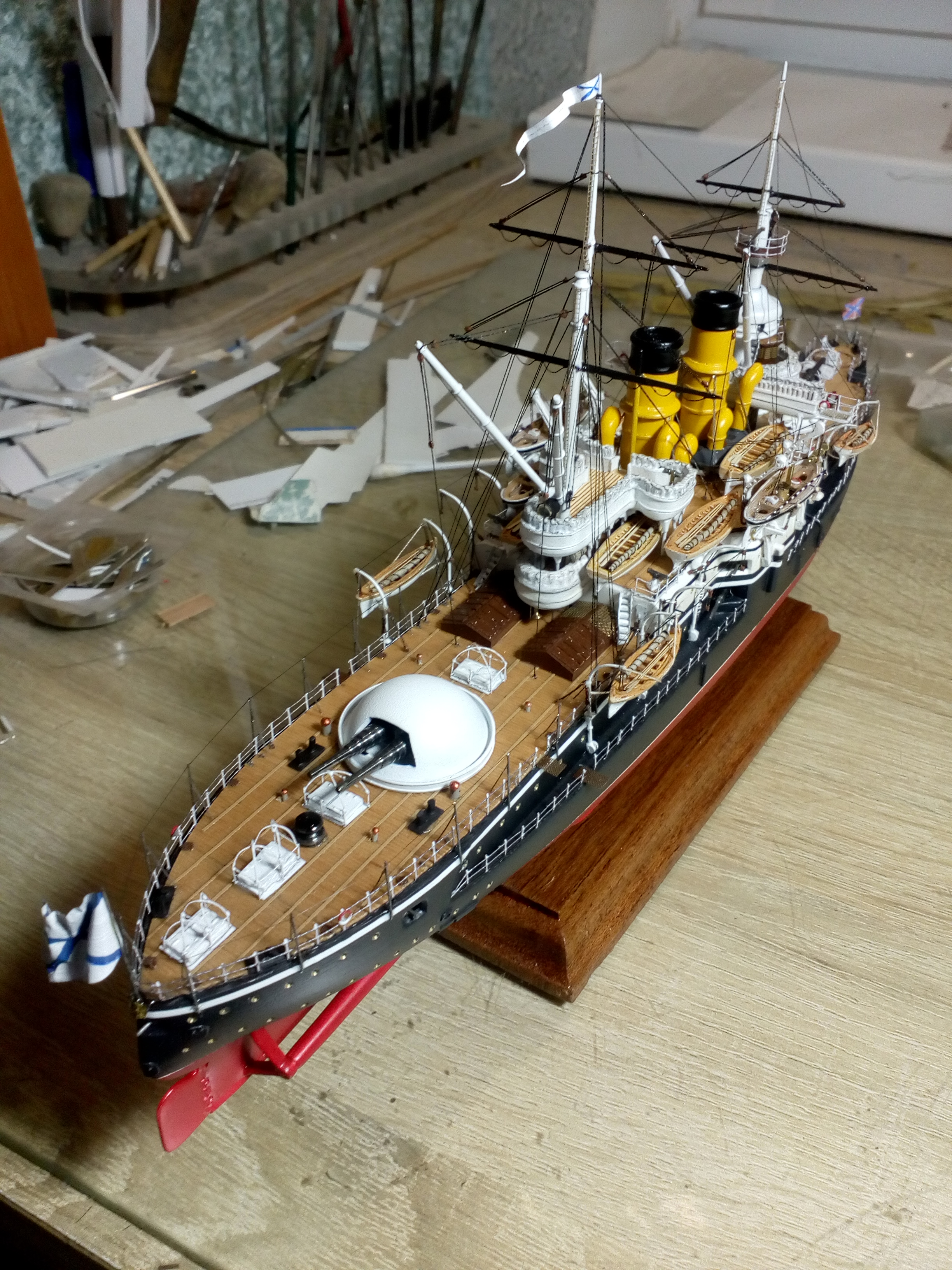 Сегодня заканчивается сказка о эскадренном броненосце 12 Апостолов. Не все получилось как хотелось, но модель достроена и результат на фото.