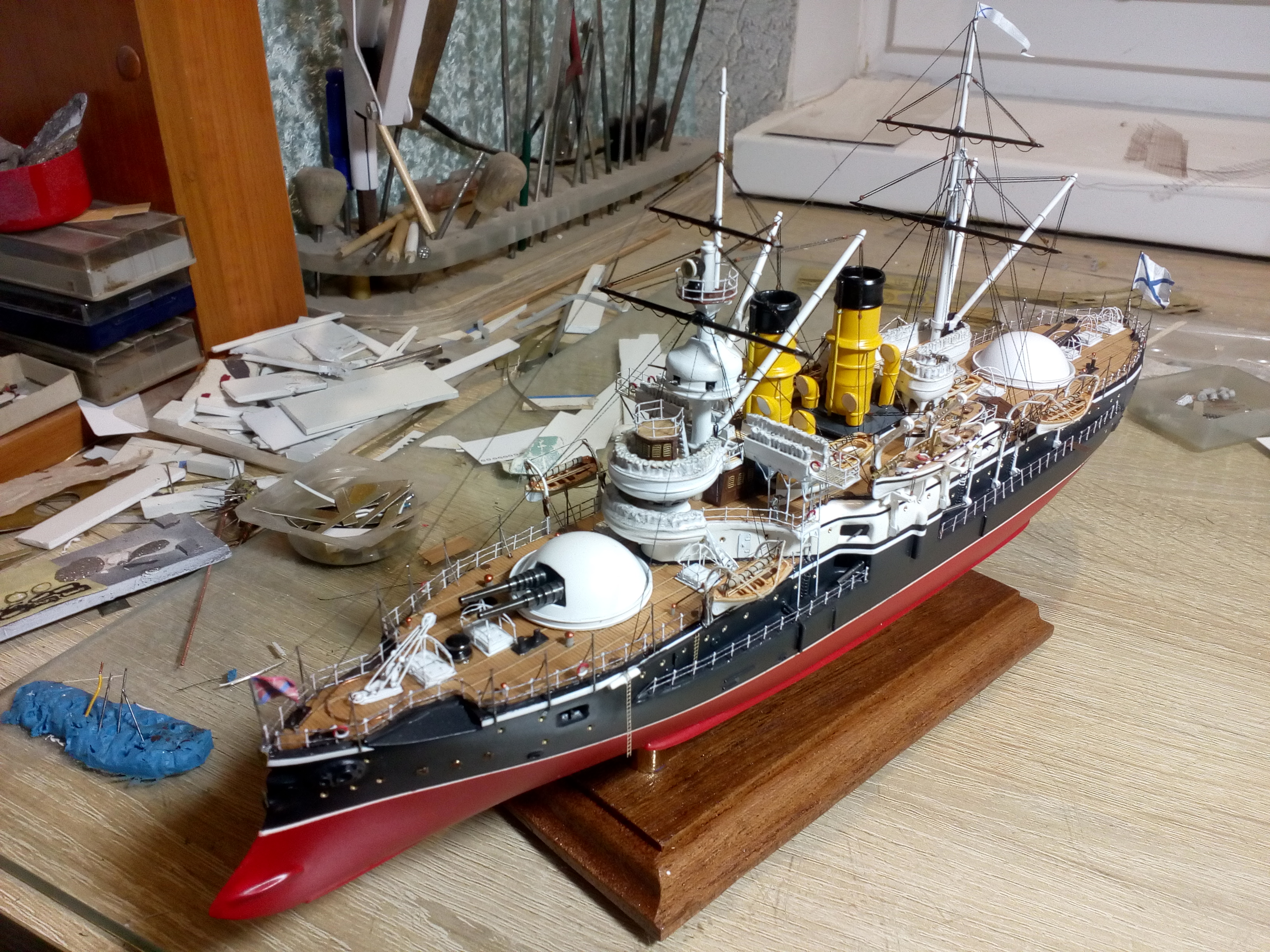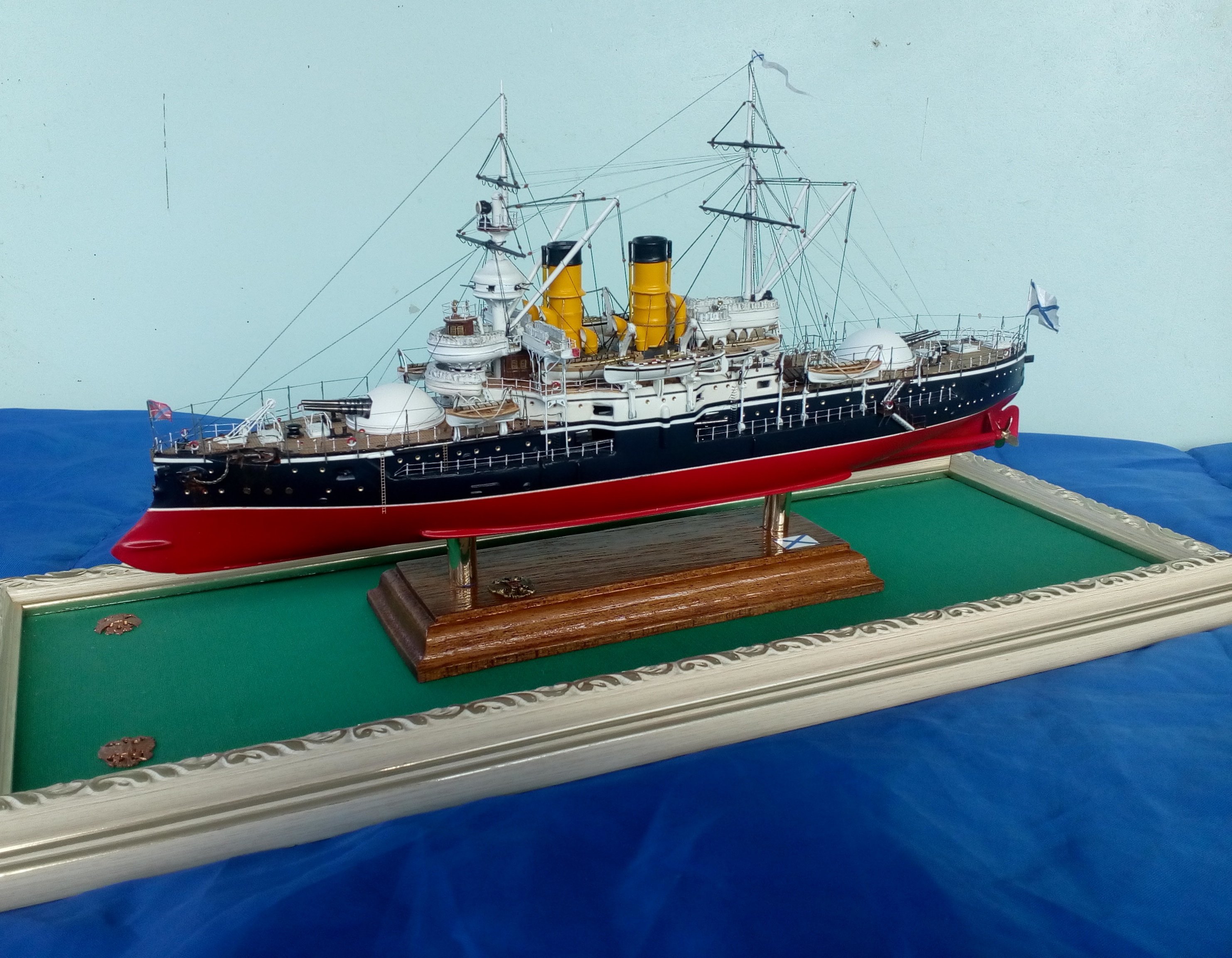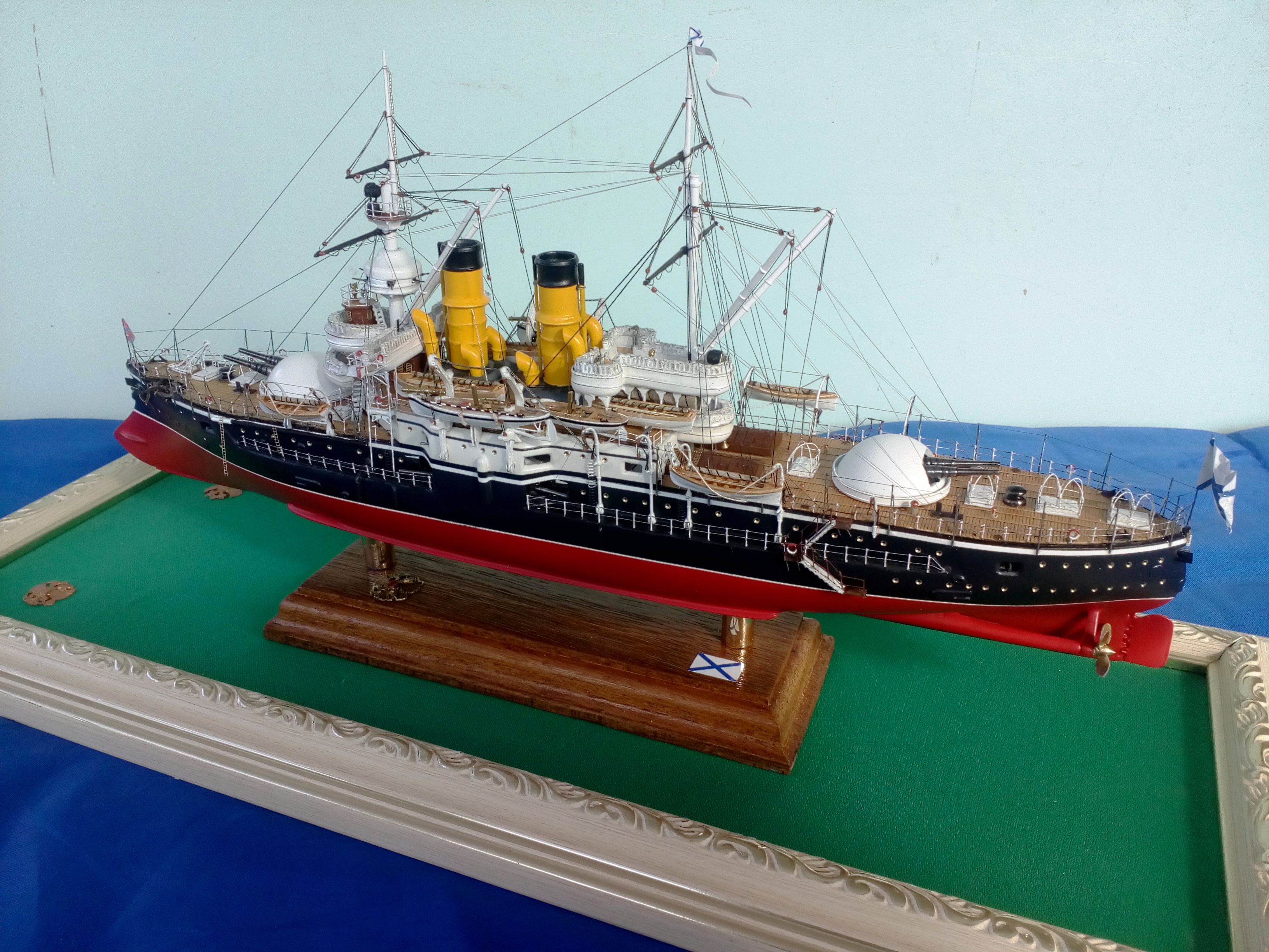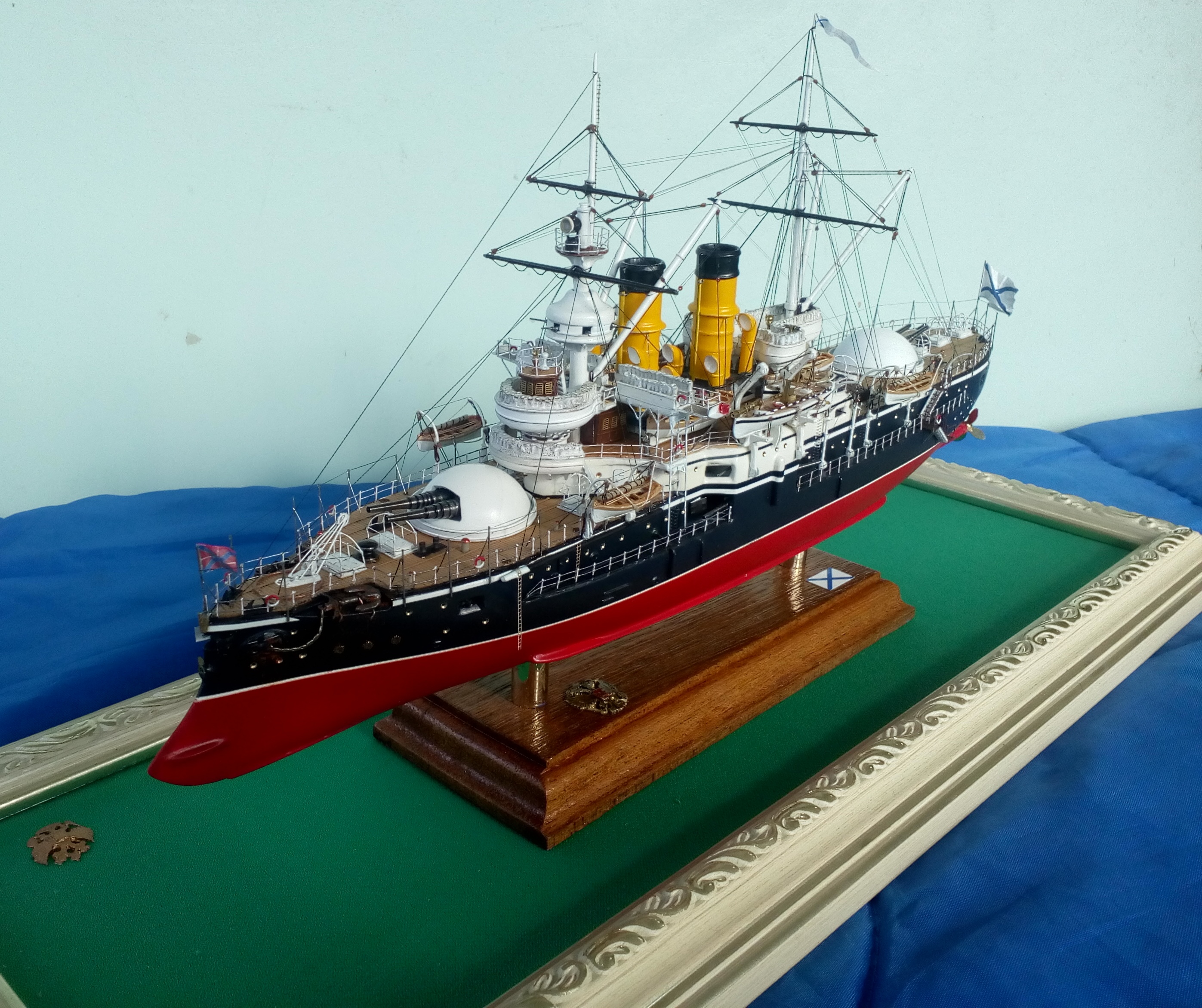Сегодня заканчивается сказка о эскадренном броненосце 12 Апостолов. Не все получилось как хотелось, но модель достроена и результат на фото.