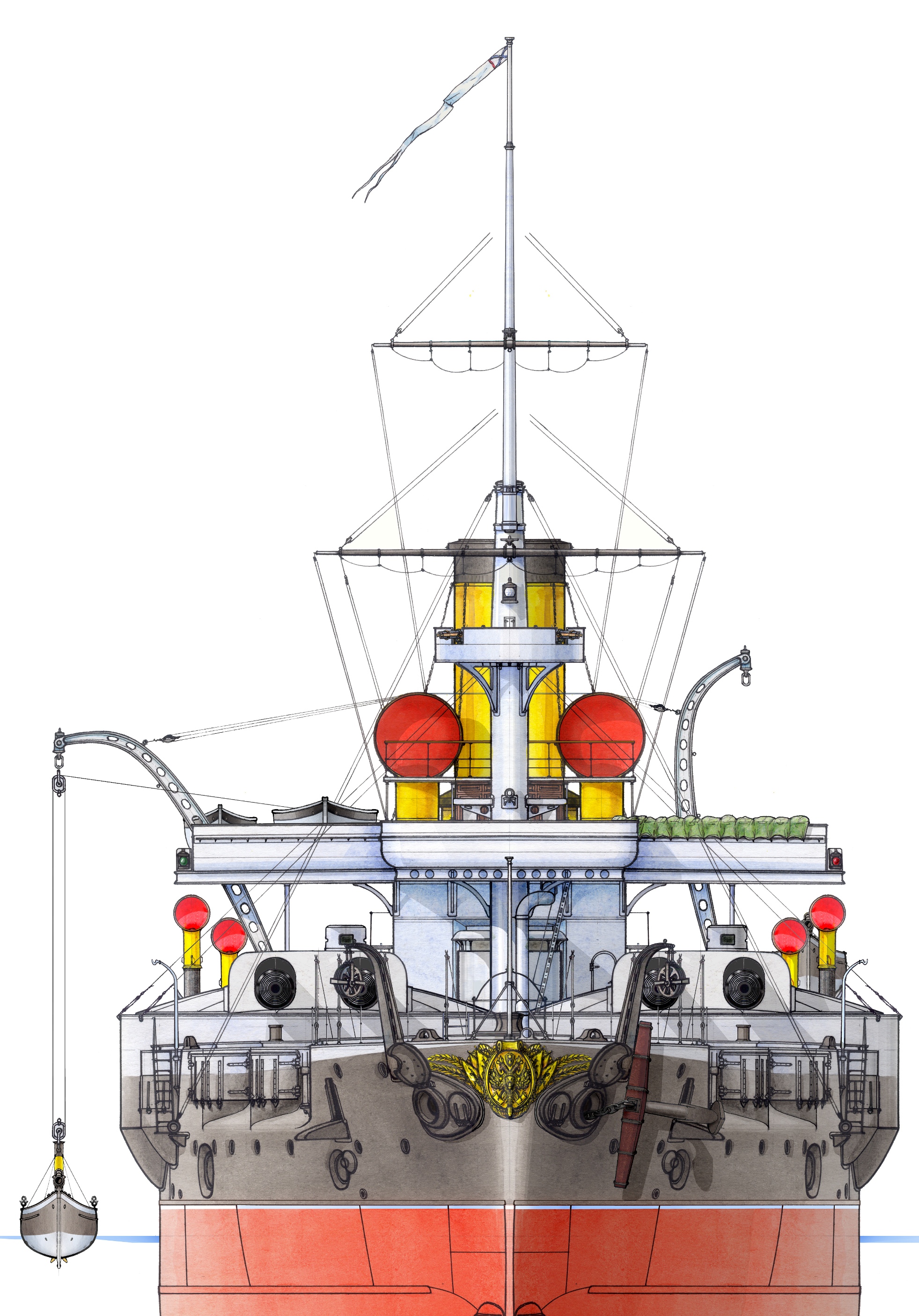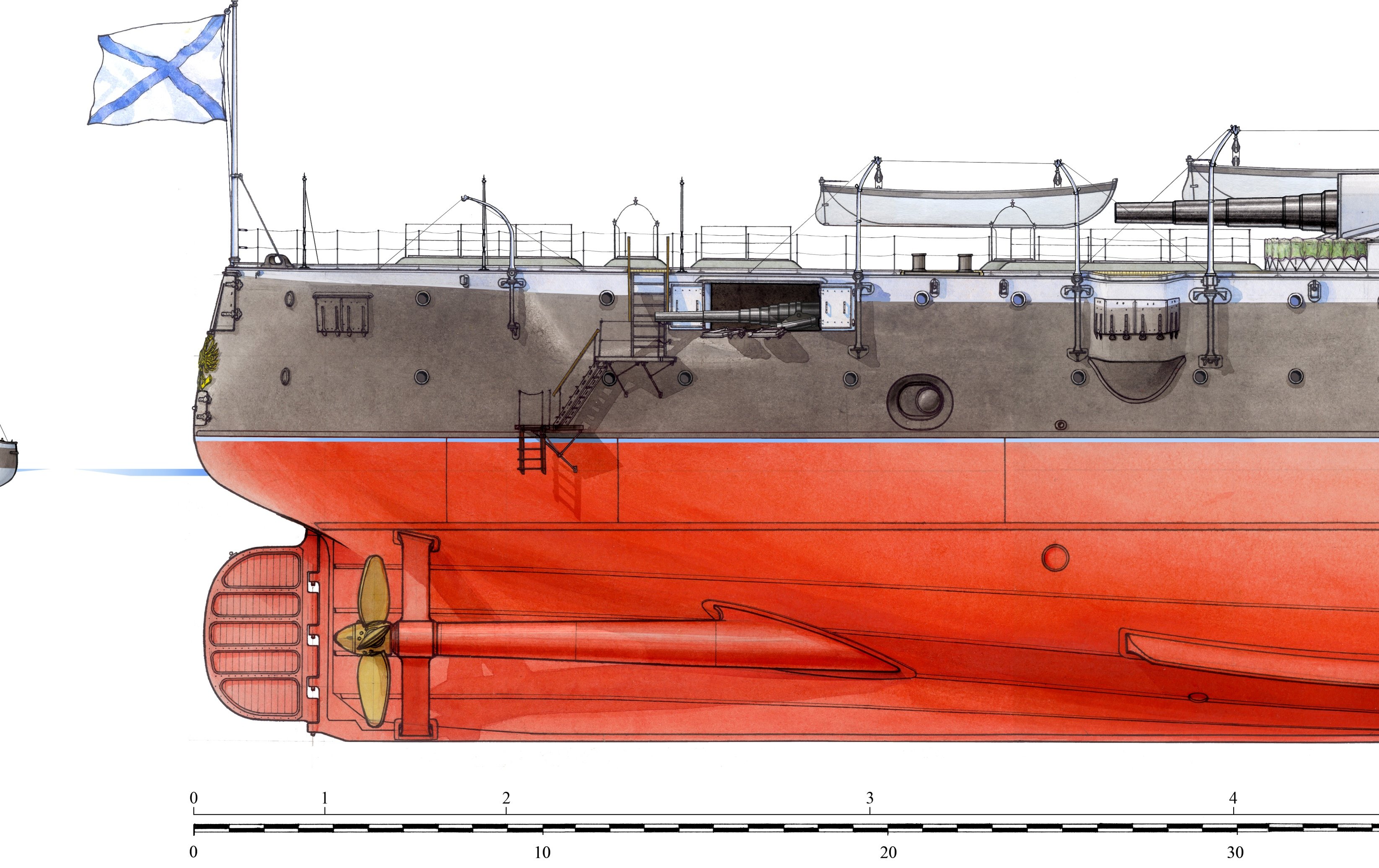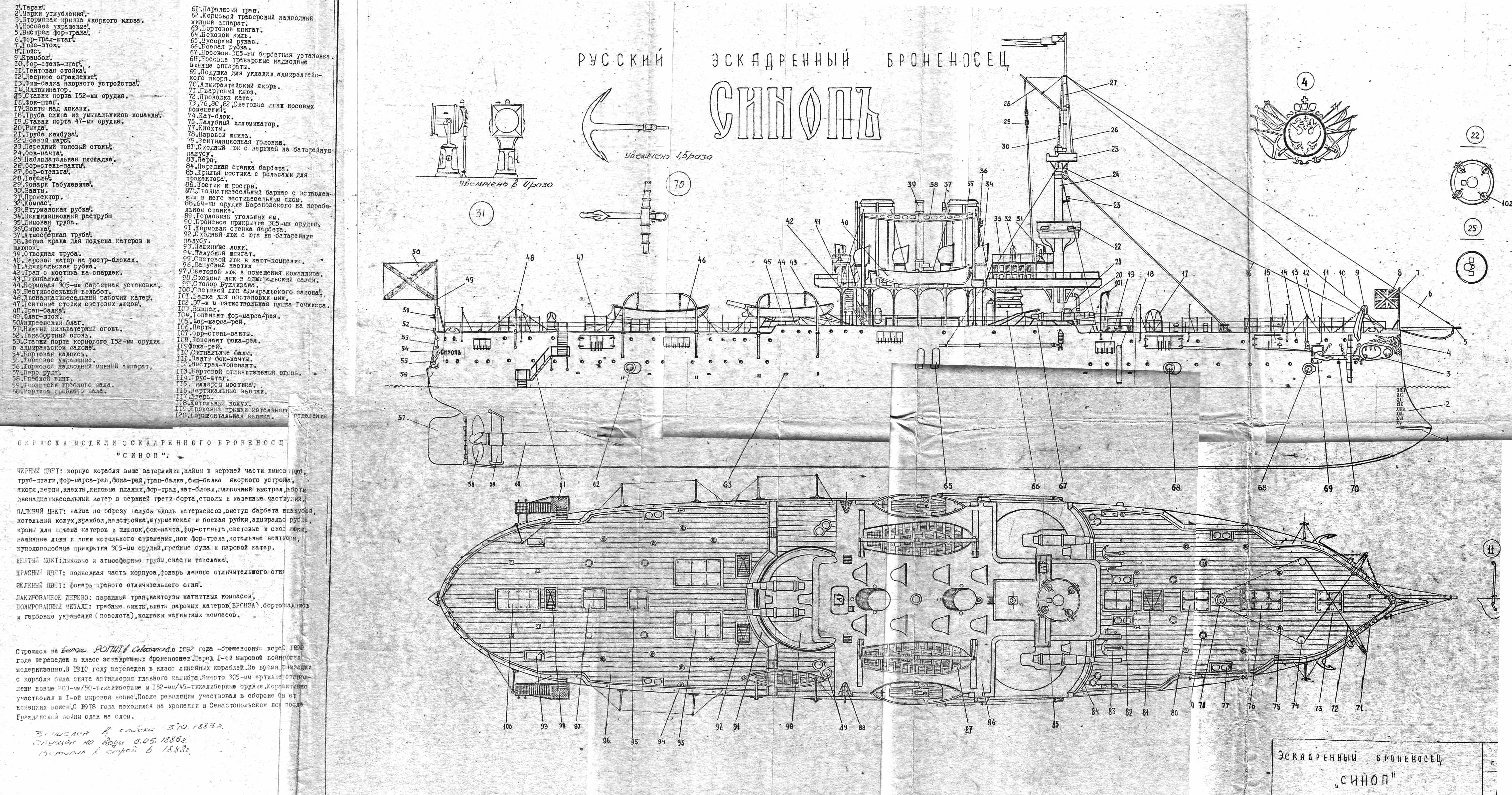 Конечно, если интерес серьезный, то все дороги, как обычно, ведут в РГА ВМФ. Шпаргалками для постройки модели в более-менее вменяемом масштабе, тут не обойтись. Но если у вас масштаб небольшой, то можно еще опереться на модель в ЦВММ. Раньше там была, сейчас не знаю.