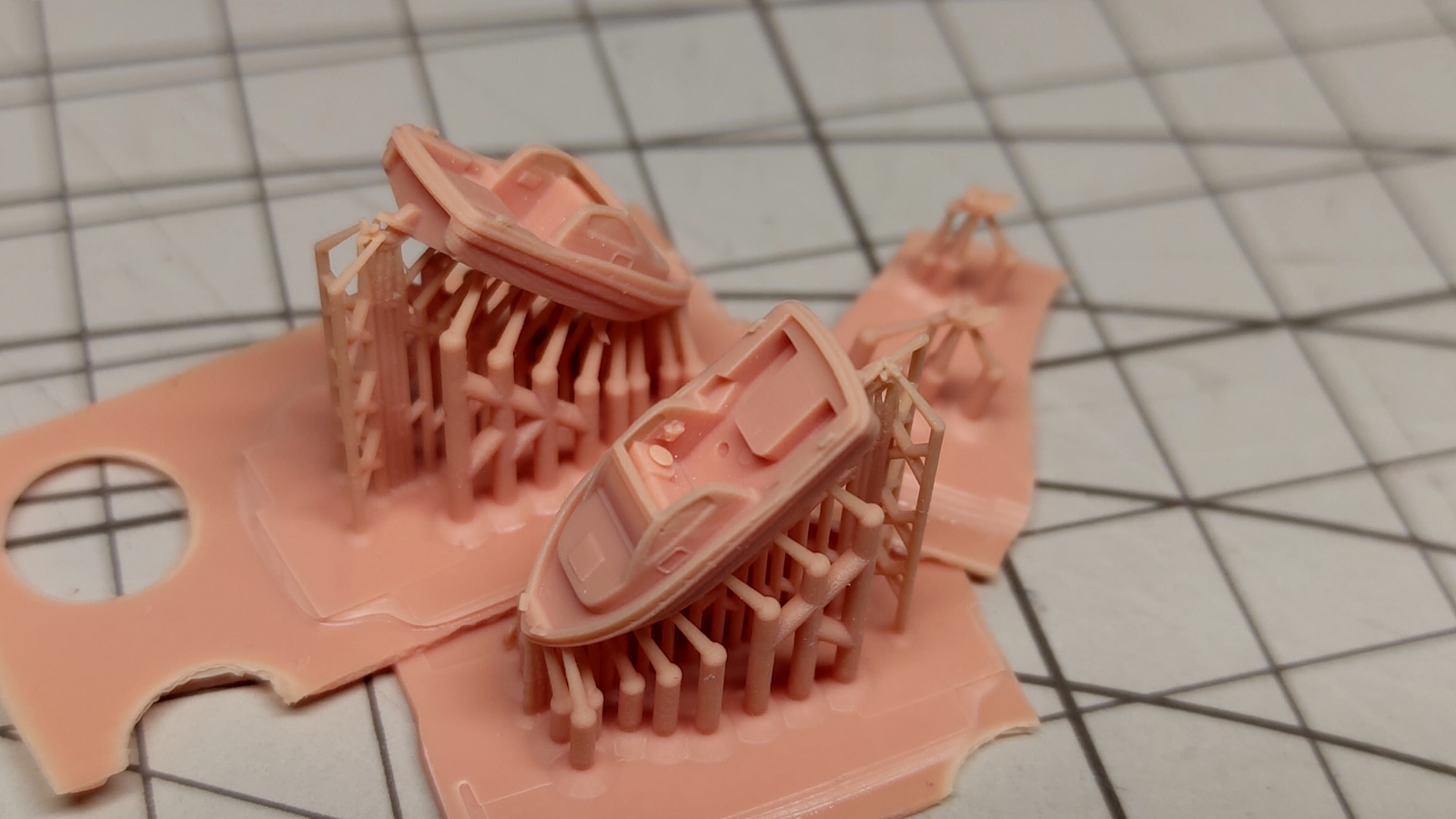 Я обычно сношу отлитые зацело штормовые леера - это то что изображено некими колбасками на надстройках.