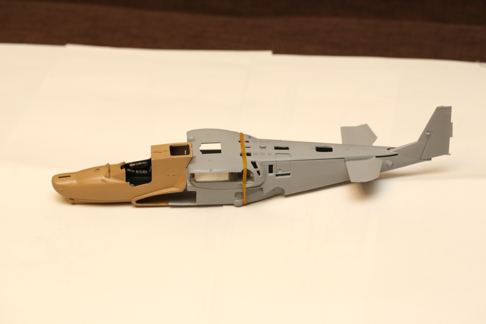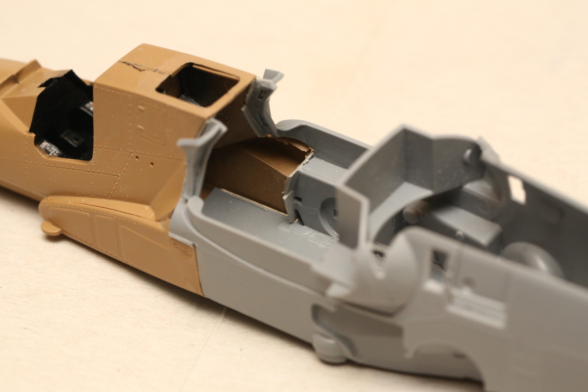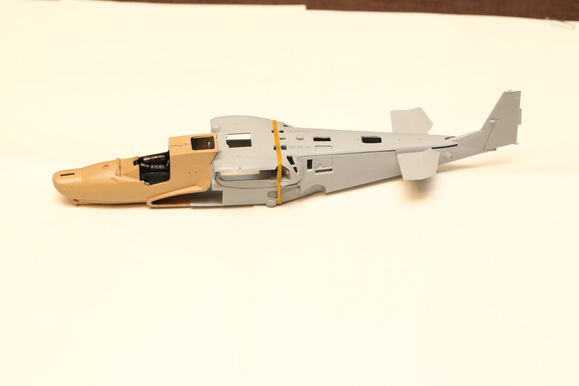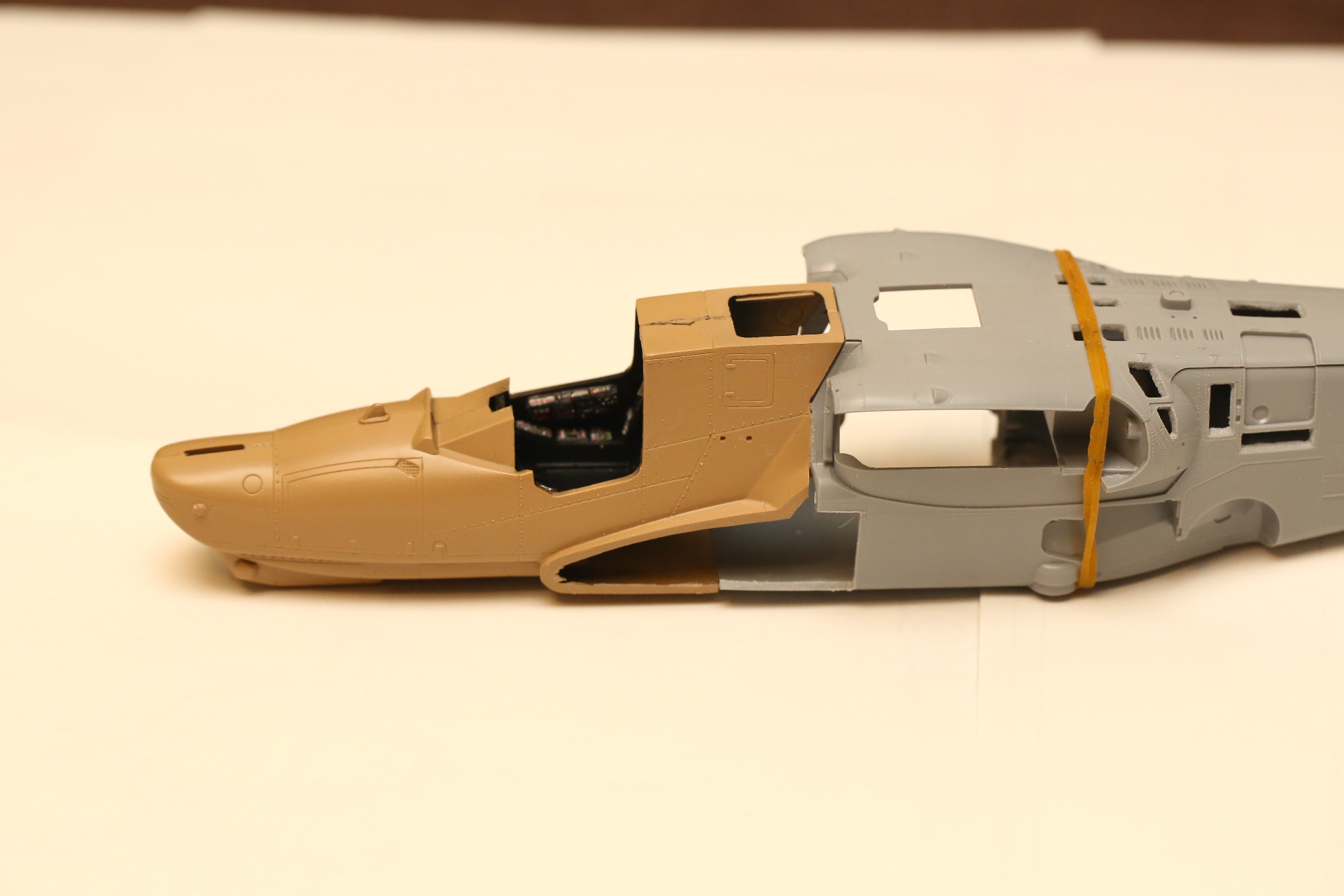 Склеиваем нос и закрепляем в нём кабину на модельный клей, т.к. примерял и вклеивал в половинку фюзеляжа на супер-клей. Есть риск, что отвалится при дальнейших манипуляциях.