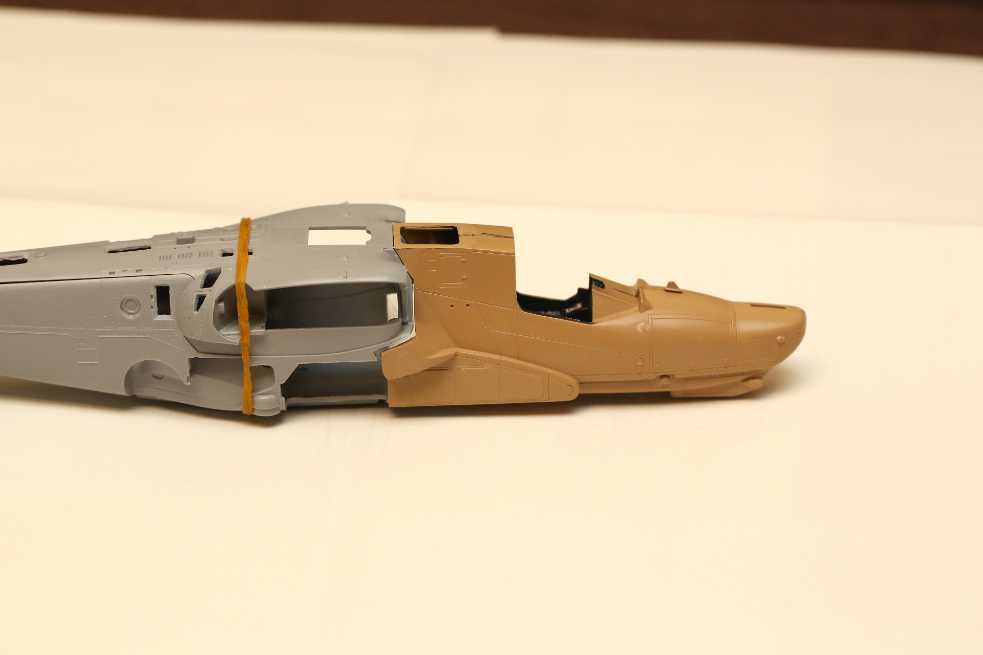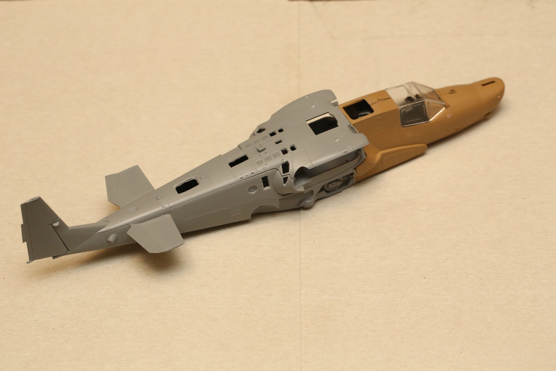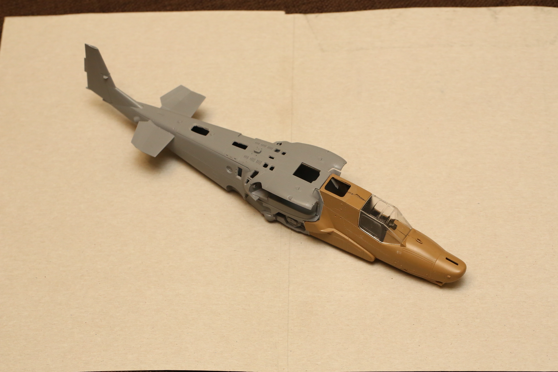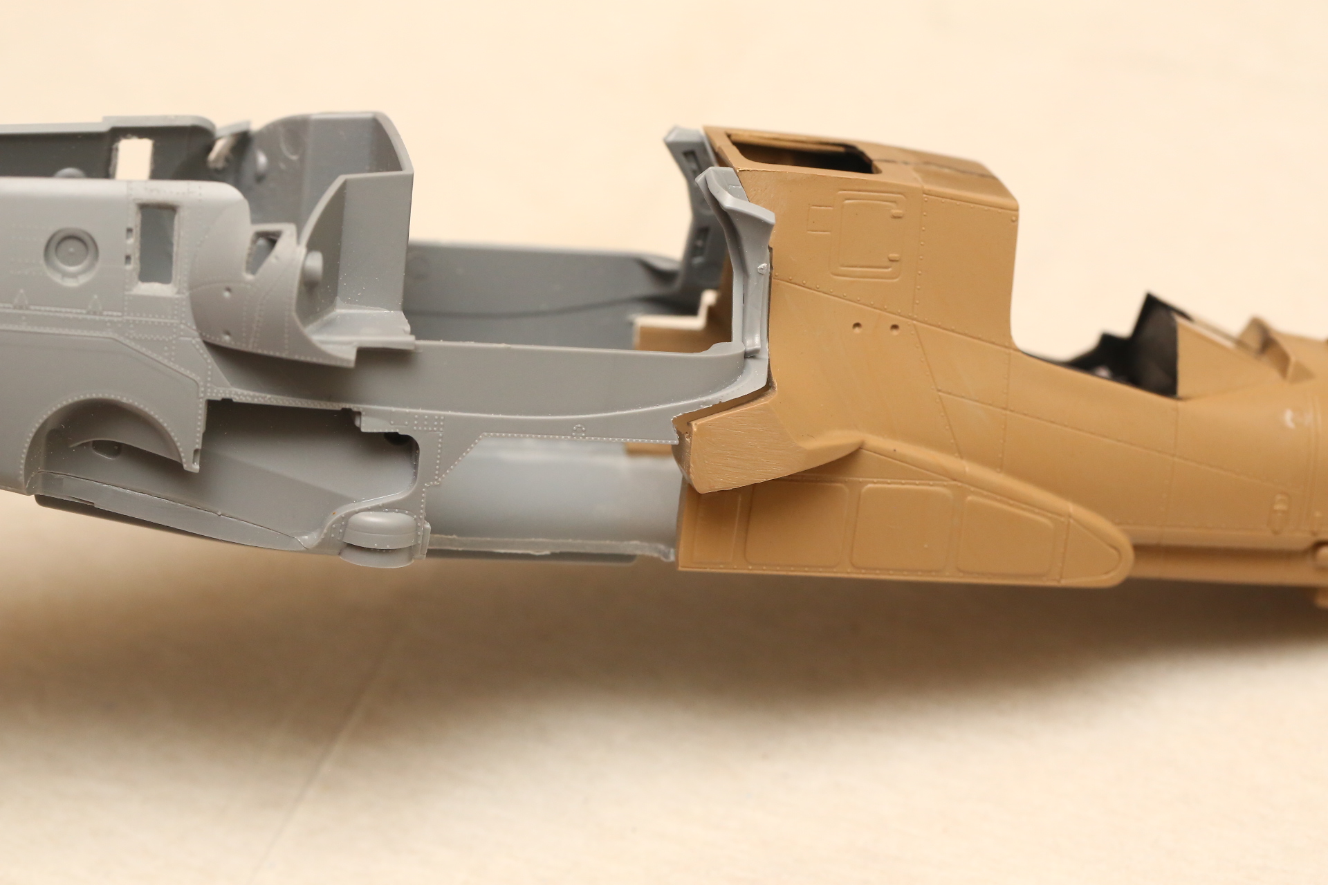 Склеиваем нос и закрепляем в нём кабину на модельный клей, т.к. примерял и вклеивал в половинку фюзеляжа на супер-клей. Есть риск, что отвалится при дальнейших манипуляциях.