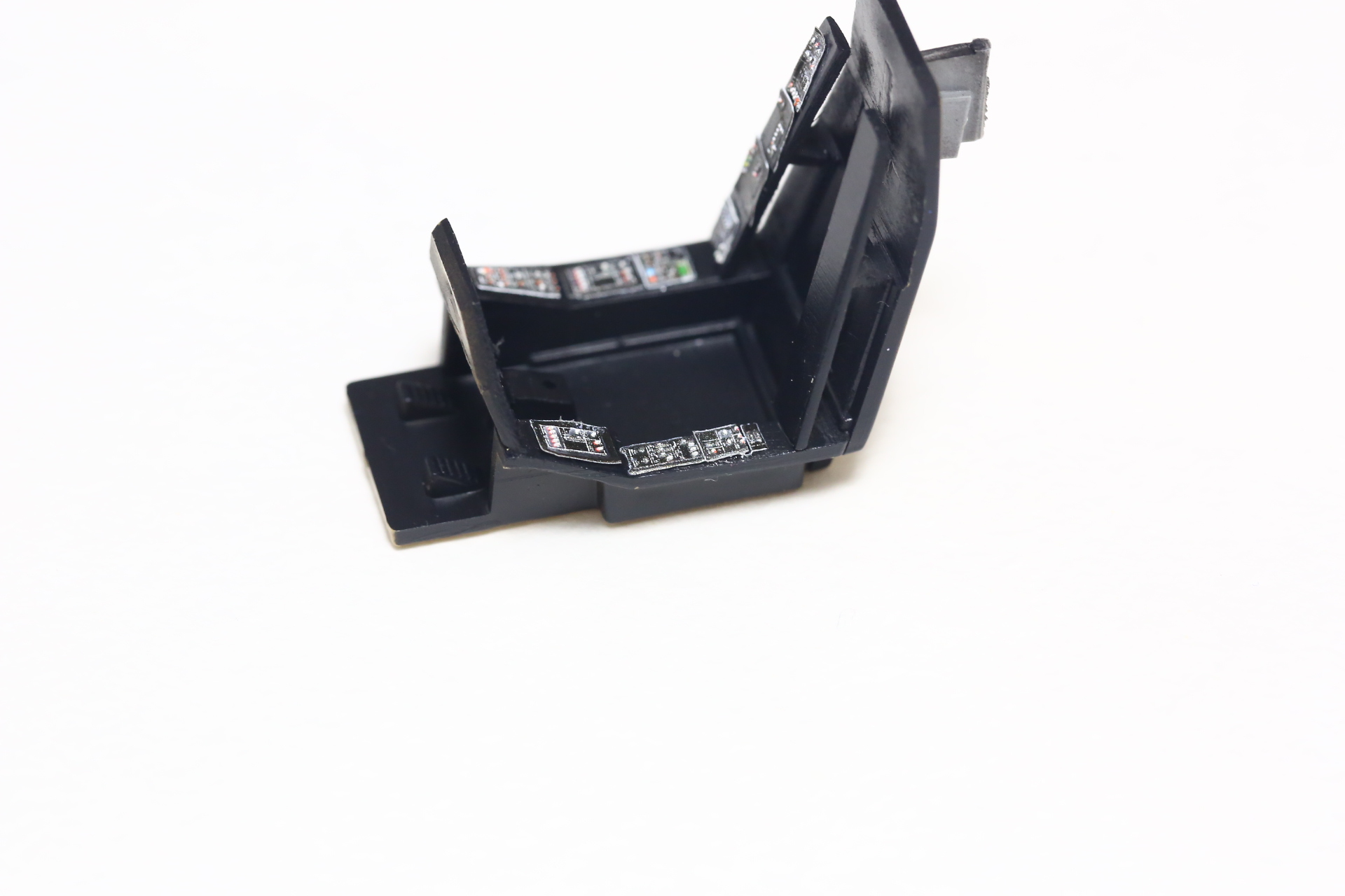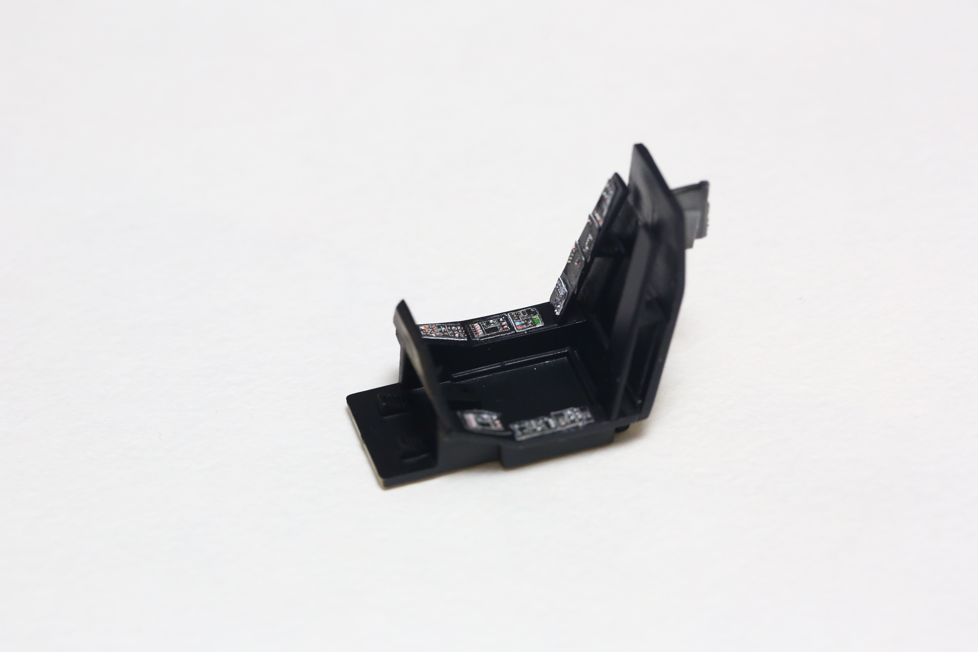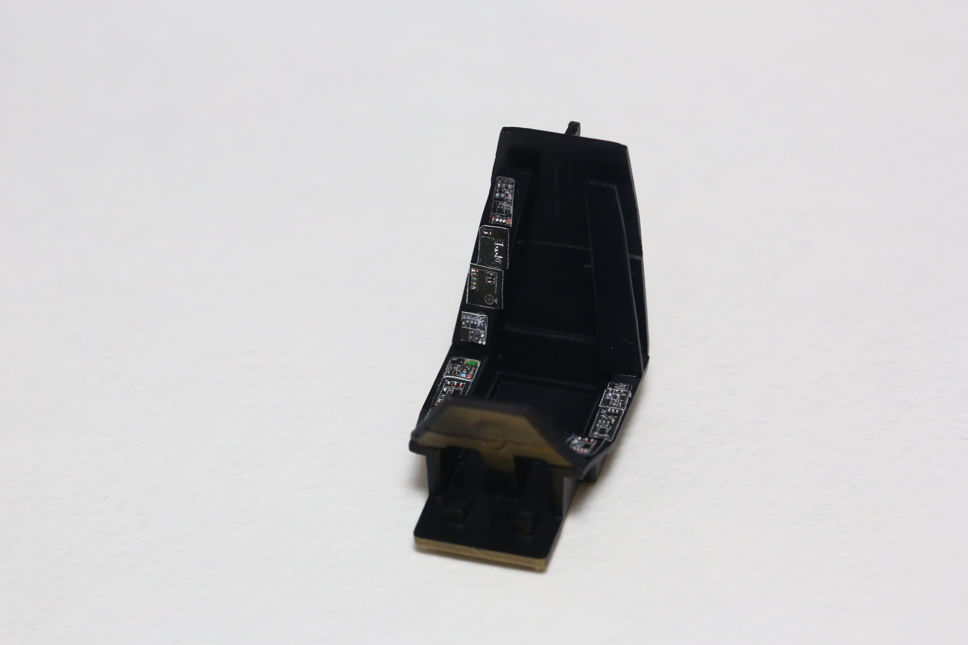 Красим кистью края панелек 3д декалей. И красим кнопочки на панели, которую обклеили декалью от Су-27 и задули в чёрный. Получаем такое: