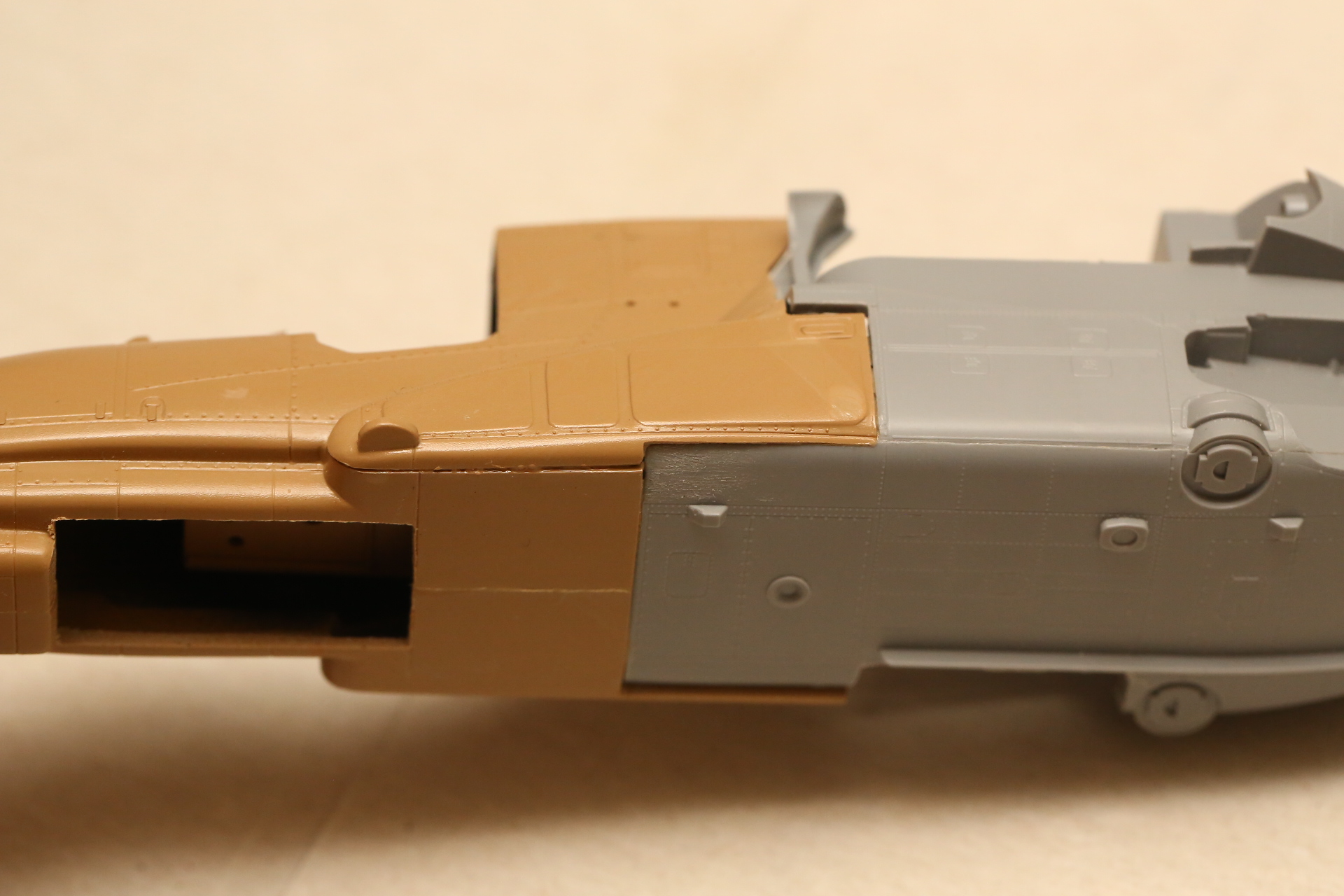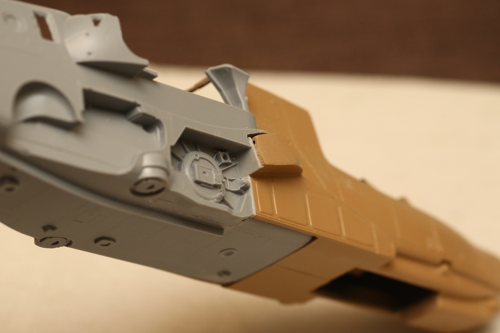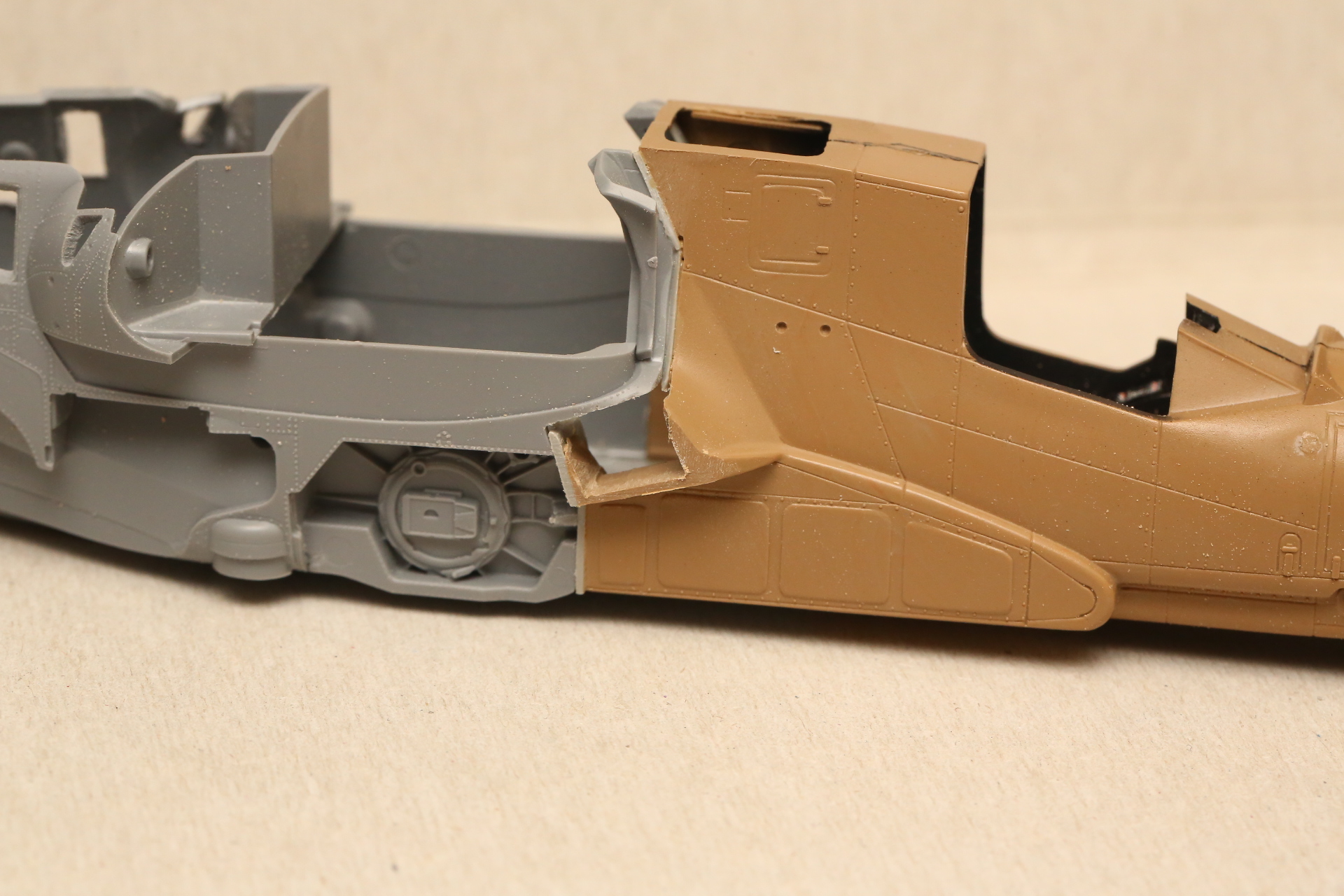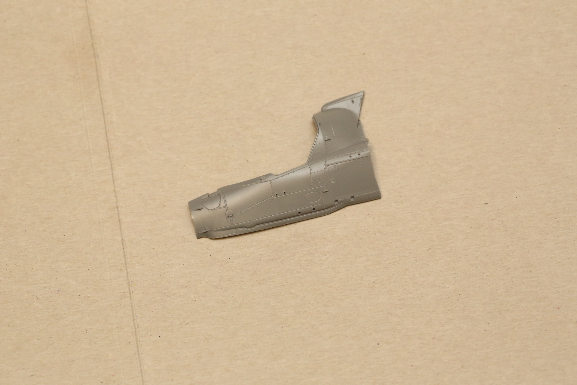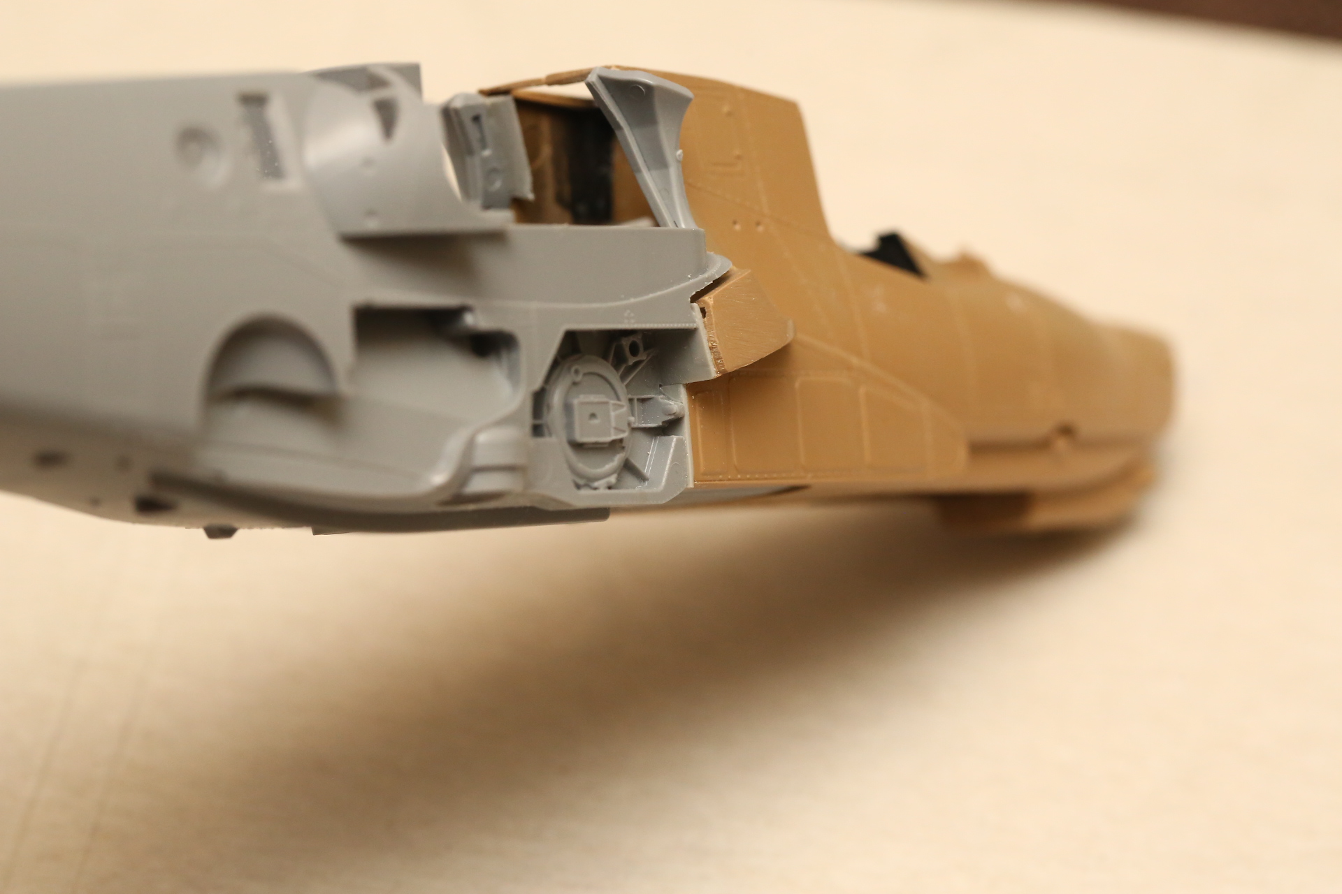 Нишу сточил, чтобы она была ближе к краю фюзеляжа, сходясь с носом Акулы. В щель нужно запихнуть пластик.