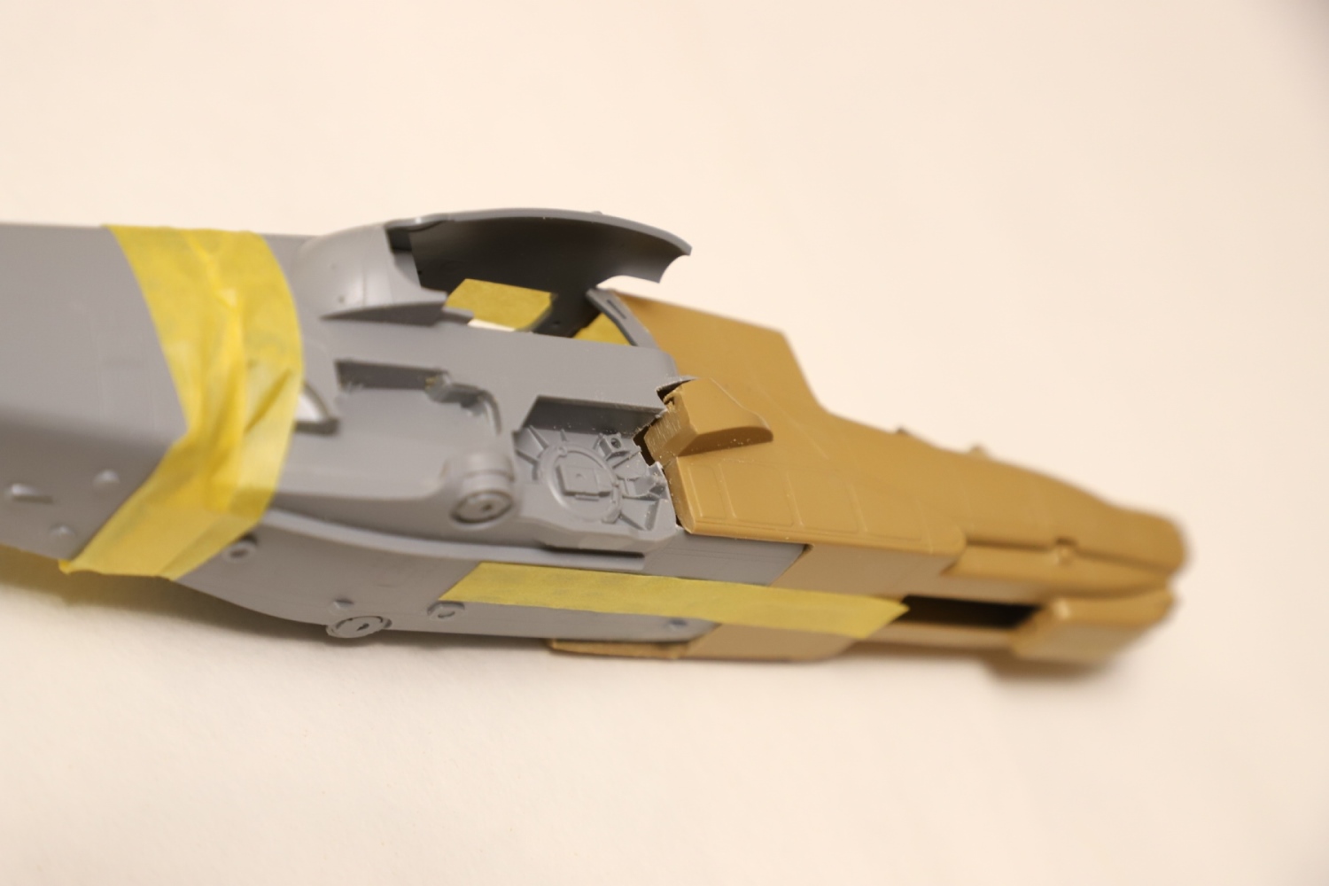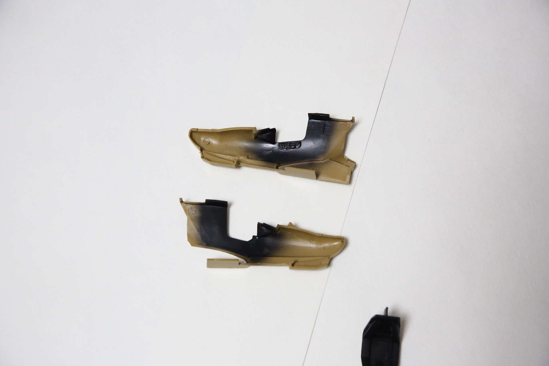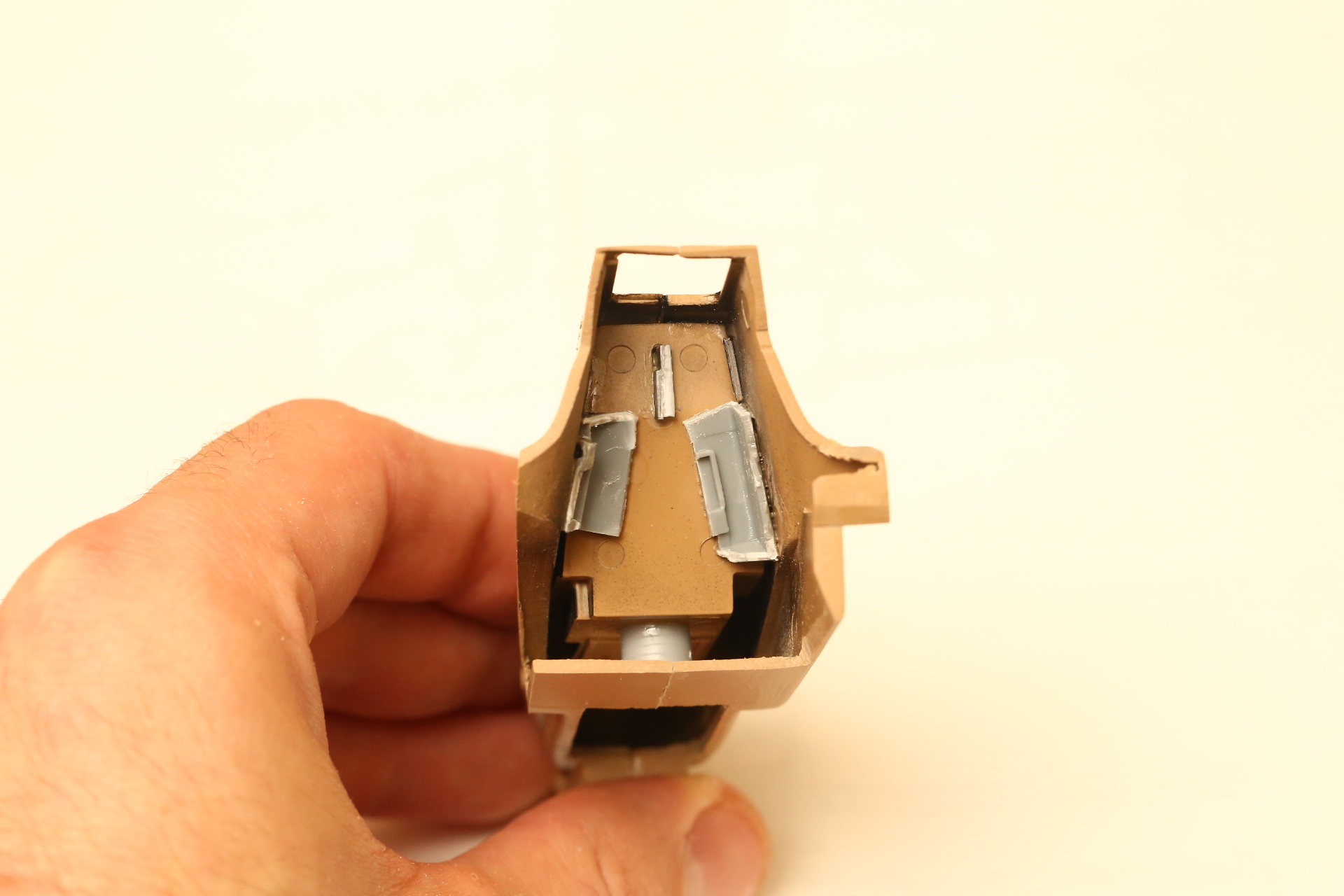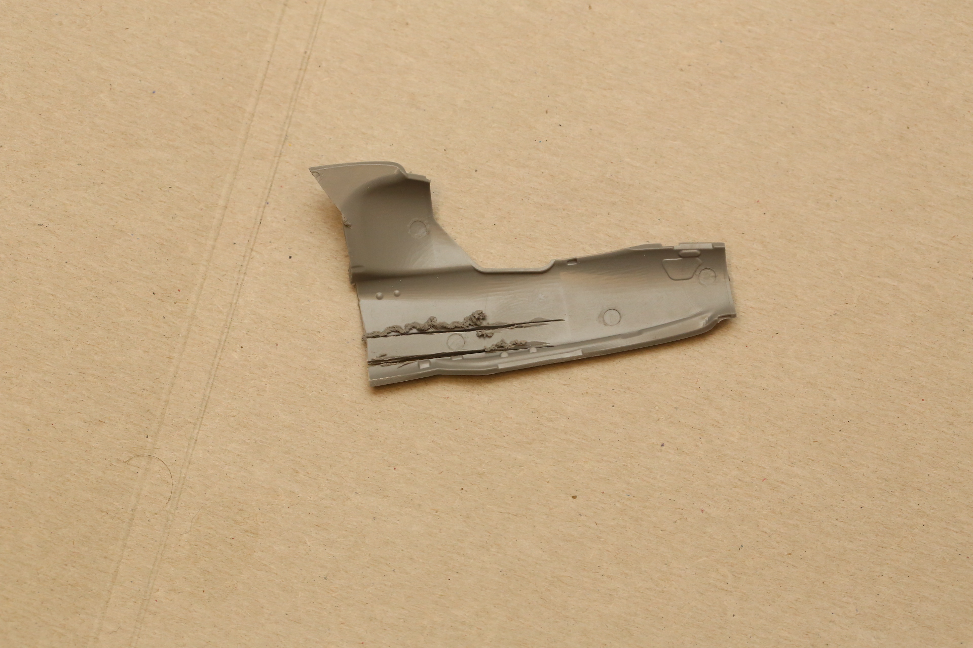 Нишу сточил, чтобы она была ближе к краю фюзеляжа, сходясь с носом Акулы. В щель нужно запихнуть пластик.
