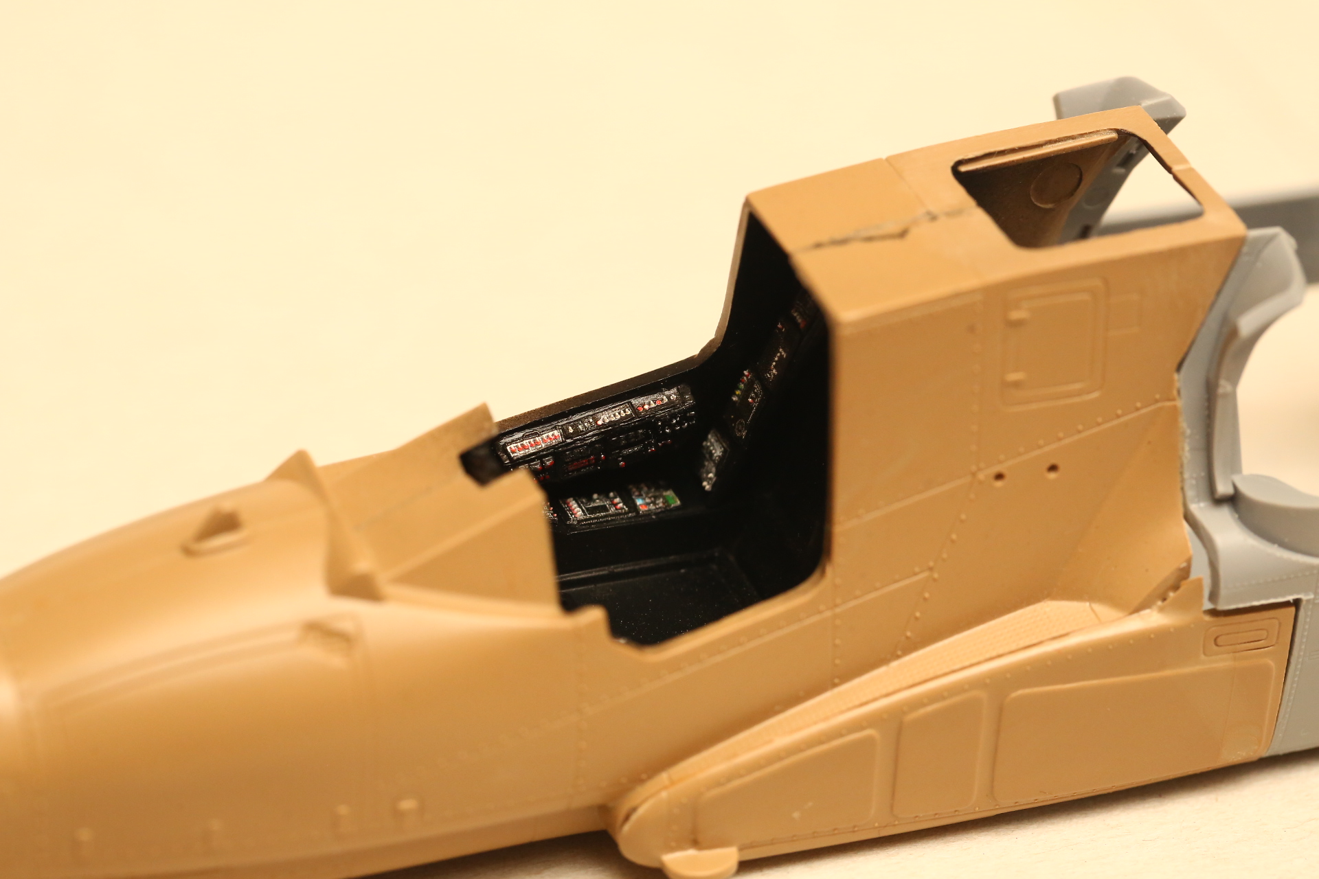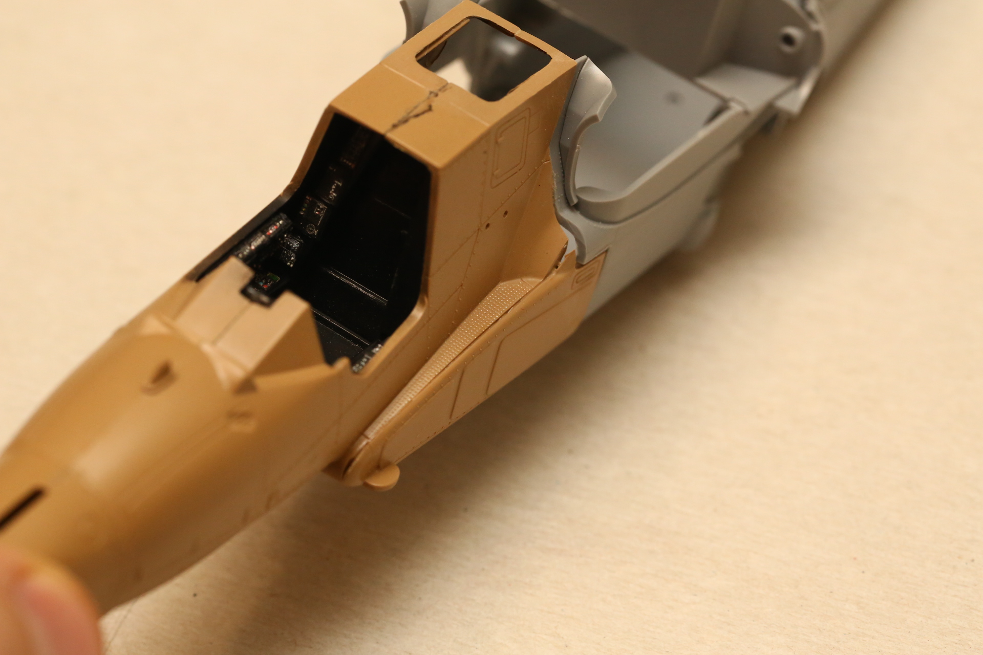 Дальше берём декаль от Emboss, что была в предзаказе к Аллигатору и руководствуясь тем, что я не знаю на память как выглядит кабина Акулы лепим на приборные панели.