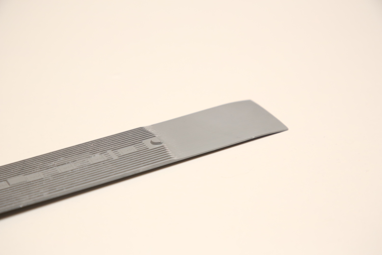 Да, совершенно верно. Металл травленки очень быстро принимает на себя тепло от разогретого шпателя и плавно входит в пластик. Предварительно попробуйте на ненужных деталях, чтобы понять степень и время нагрева Вашего шпателя и время его взаимодействия с травлением, чтобы оно вошло в пластик.