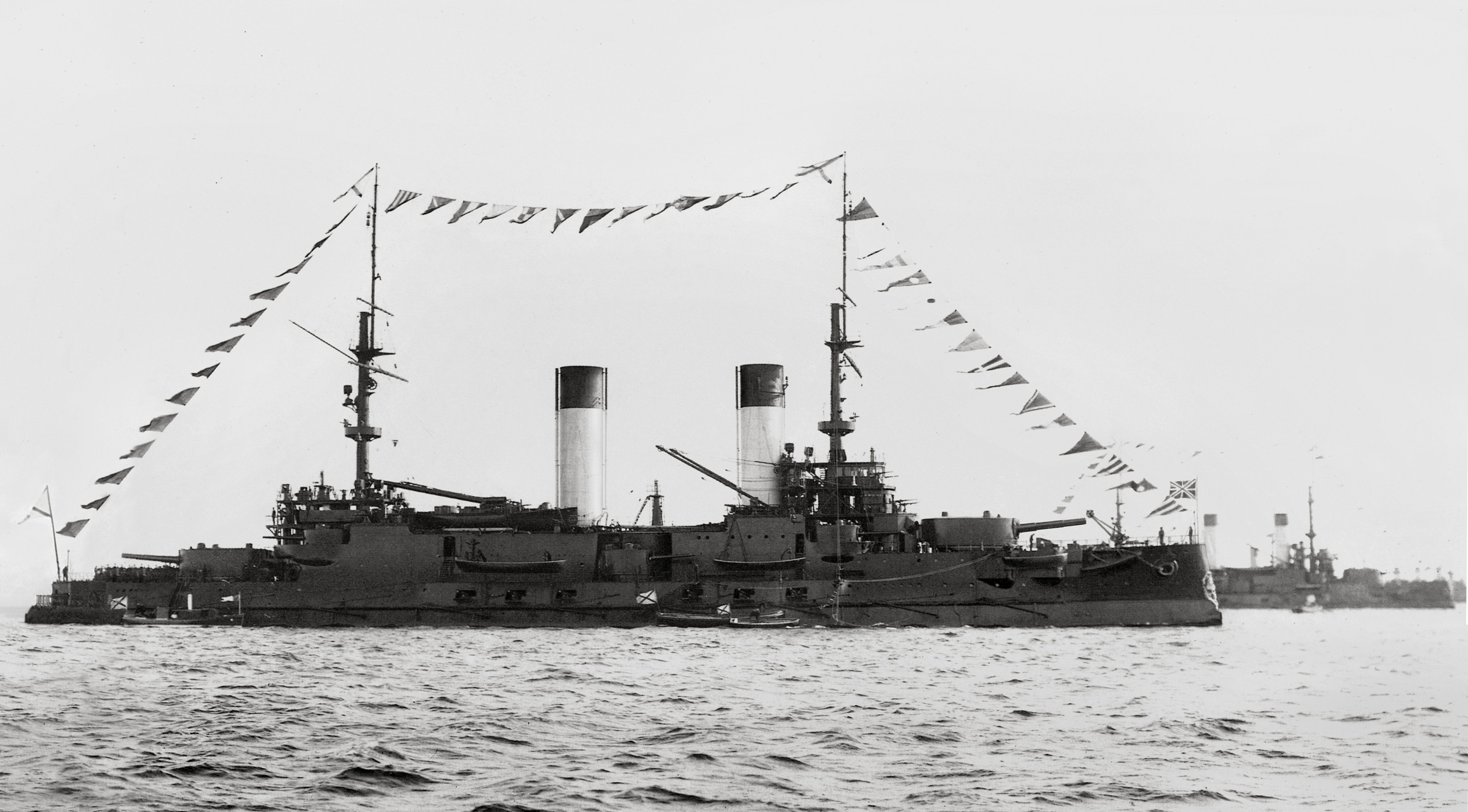 12. 47 мм орудия. Из 20 - 18 были одного типа и стояли на надстройках. 2 были другого типа (стреляли с использованием дымного пороха) и стояли на фальшборте в районе 2-й дымовой трубы. Без щитов, смотрим сфальсифицированную по мнению одного ноунейма фоту. Как они там обслуживались - я не установил, сам фальшборт в верхней части имел ширину 1200 мм, что явно недостаточно для работы расчета орудия. Очевидно, была предусмотрена какая-то полукруглая и, возможно, откидывающаяся, банкета, но это не точно. При этом тумба под орудие не имела ничего общего с тумбами на которых стояли 18 других орудий.