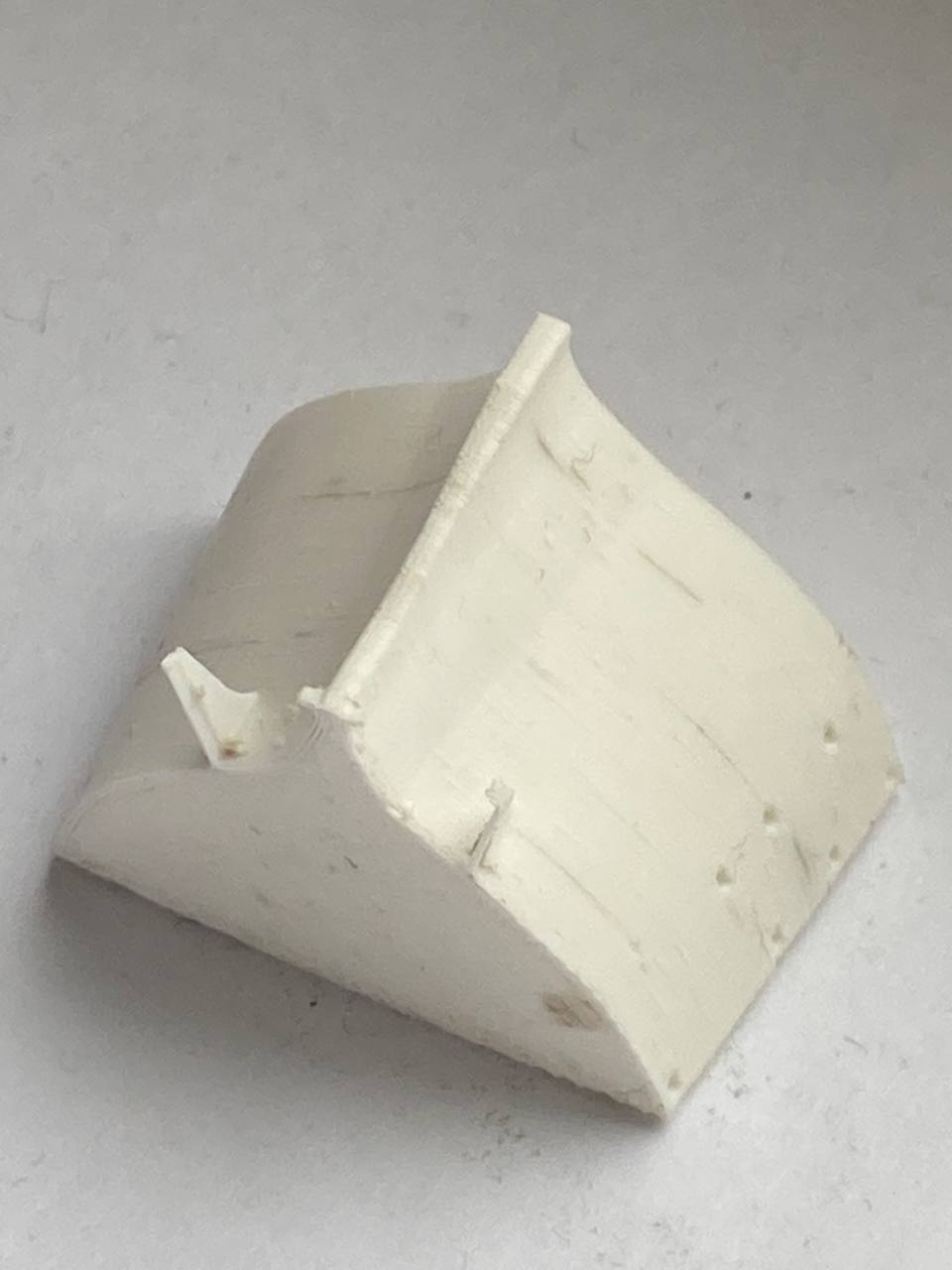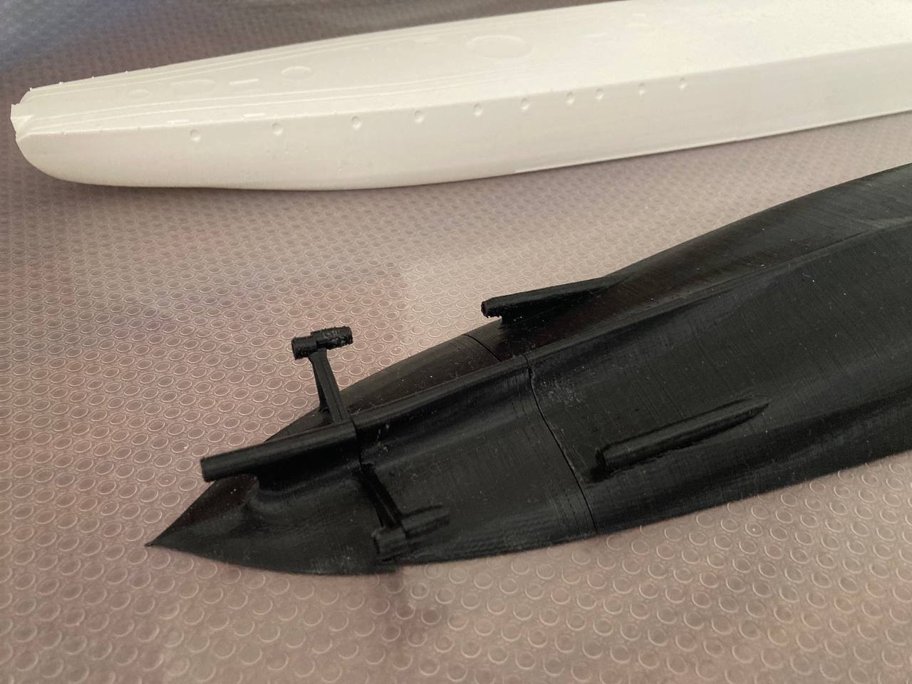 На фото часть модели крейсера проекта 26бис в масштабе 1/350 ("Цесаревич" в слегка более мелком 1/400), исполненной в той же FDM технологии. Со всеми "гранями" и очень "специально". Этот масштаб я не предлагаю, мои масштабы 1/200 до 1/20. На втором фото - корма эсминца "Новик" (подводная из 3-х частей) масштаб 1/100.