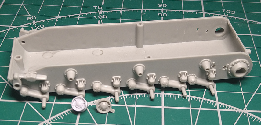 А теперь снова про КВ-1 с литой башней обр. 1942 г. Не удержался и распотрошил коробку и начал прикидывать объем работ. По ходовой решил ограничиться заменой гусеницы и поддерживающих роликов. Она конечно сделана упрощенно, но эти упрощения практически не будут видны. Новую стройку открывать не буду, соберу в этой теме.